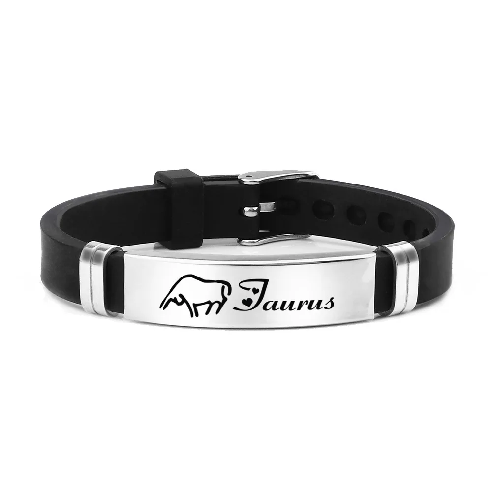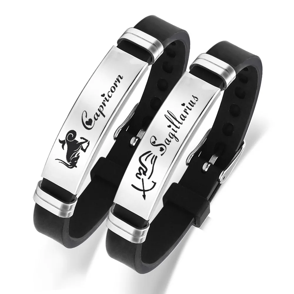 12 Constellation Silicone Bracelet 2022 Fashion Stainless Steel Adjustable Couple Bracelet Men’s Birthday Gift Jewelry