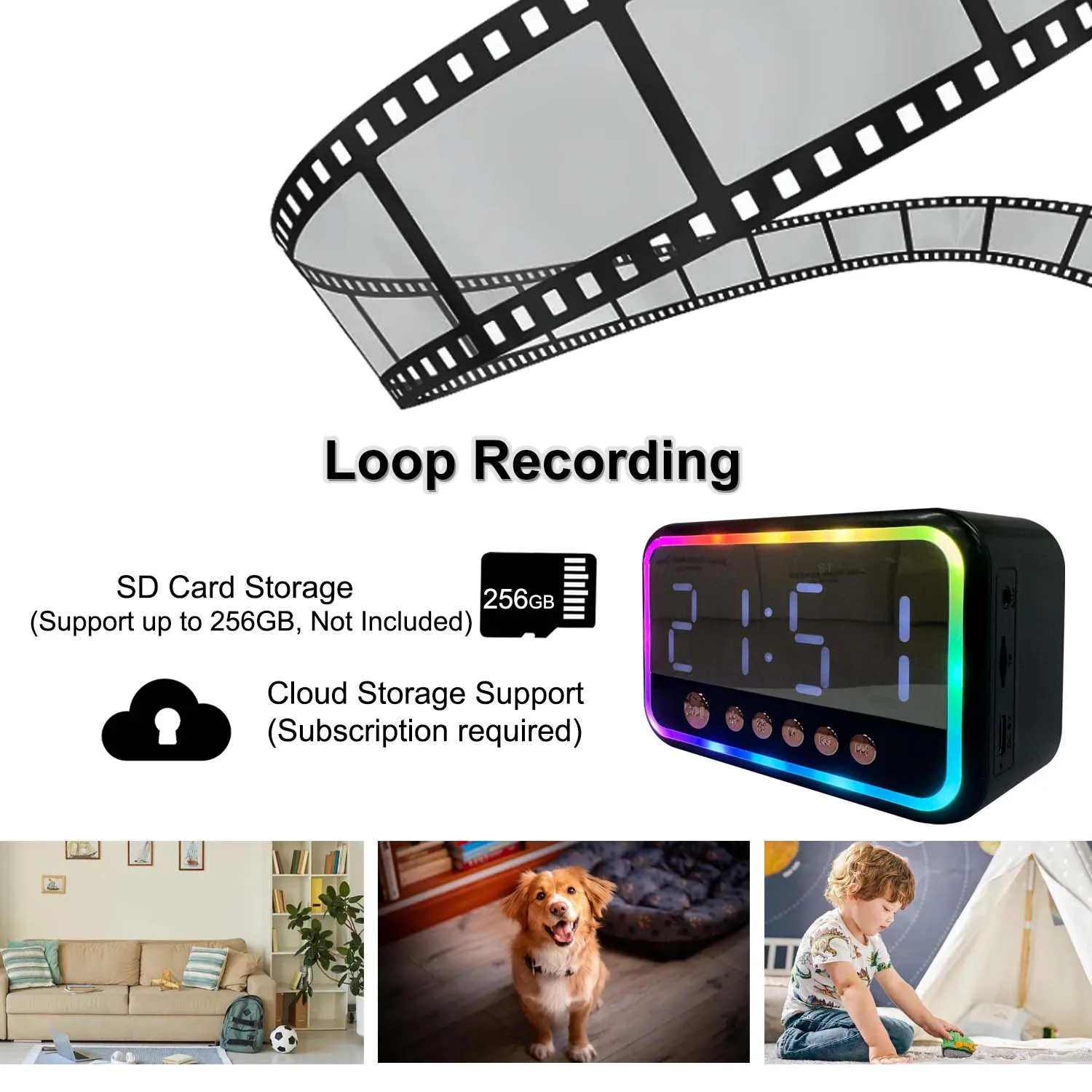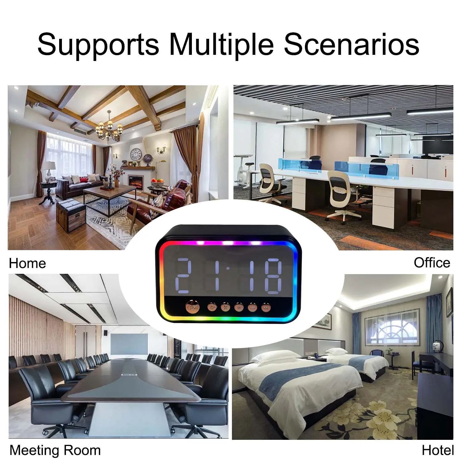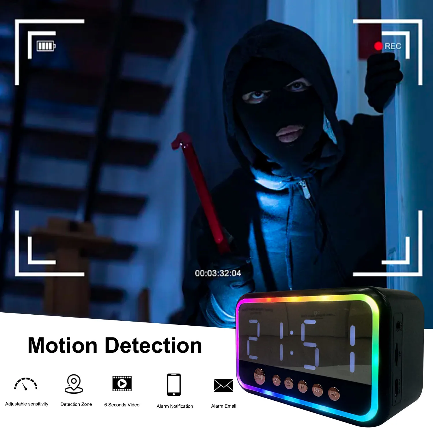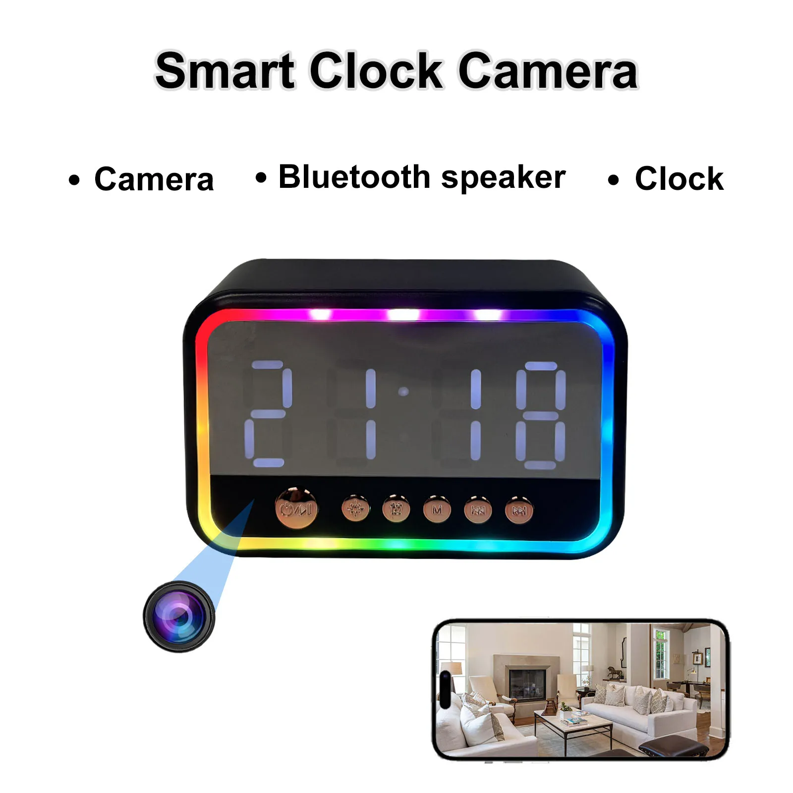 4K Clock Camera with Bluetooth Speaker, WiFi, Motion Detection, App Control, Alarm & Temp Display – Ideal for Indoor Use
