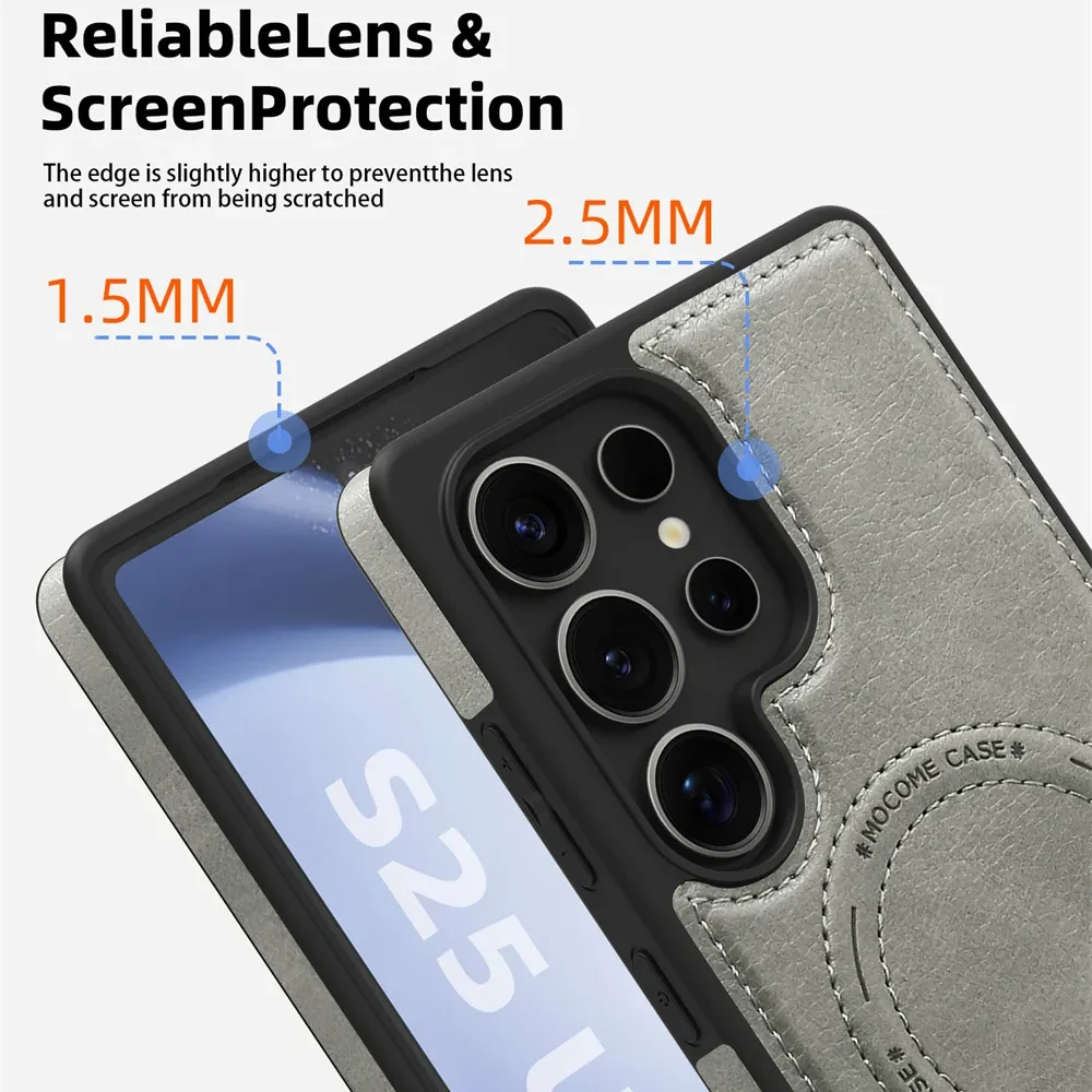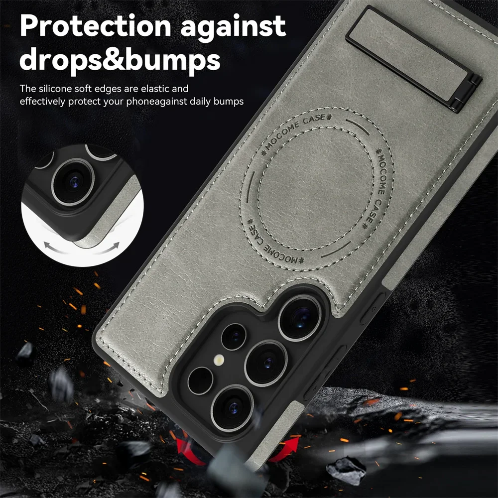 Business Leather Stand Holder Magnetic Case For Samsung S25 S26 S23 S24 Ultra Plus S24FE for Magsafe Wireless Charging Cover
