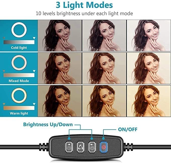 Cezo Professional Led Ring Light With Tripod Stand For Mobile Phones & Camera, 3 Temperature Mode Dimmable Lighting, Photo-Shoot, Video Shoot, Makeup & More