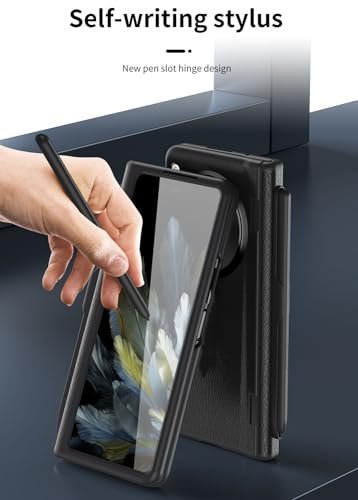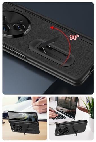 Compatible with Oneplus Open/OPPO Find N3 Case with Pen & Pen Holder, [Hinge Protection] [Built-in Screen Protector] [Kickstand] All-Inclusive Luxury PU Leather Phone Case (Black)
