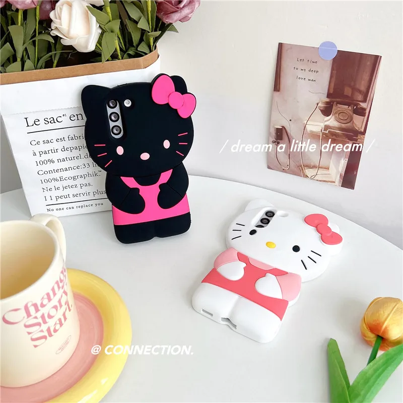 Cute 3D Hello Kittty Phone Case For Samsung Galaxy S25 S24 S23 S22 Ultra Plus S20 S21 S23 FE A54 A55 A36 A16 Soft Silicone Cover