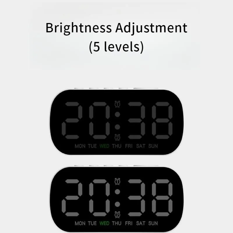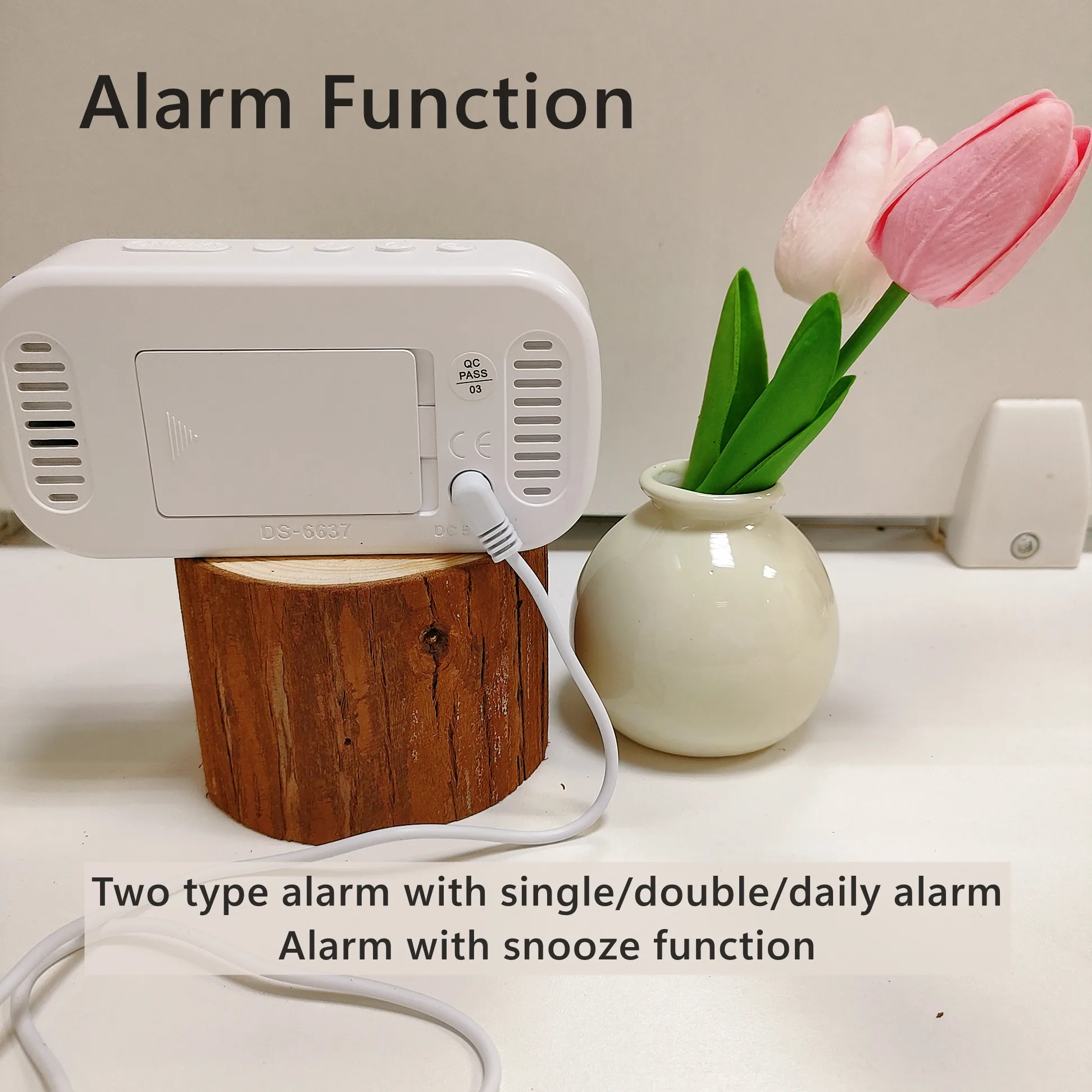 Digital Alarm Clock USB Powered Temperature Date Week Dual Alarm Night Mode Snooze Clock 5 Levels of Brightness 12/24H LED Clock