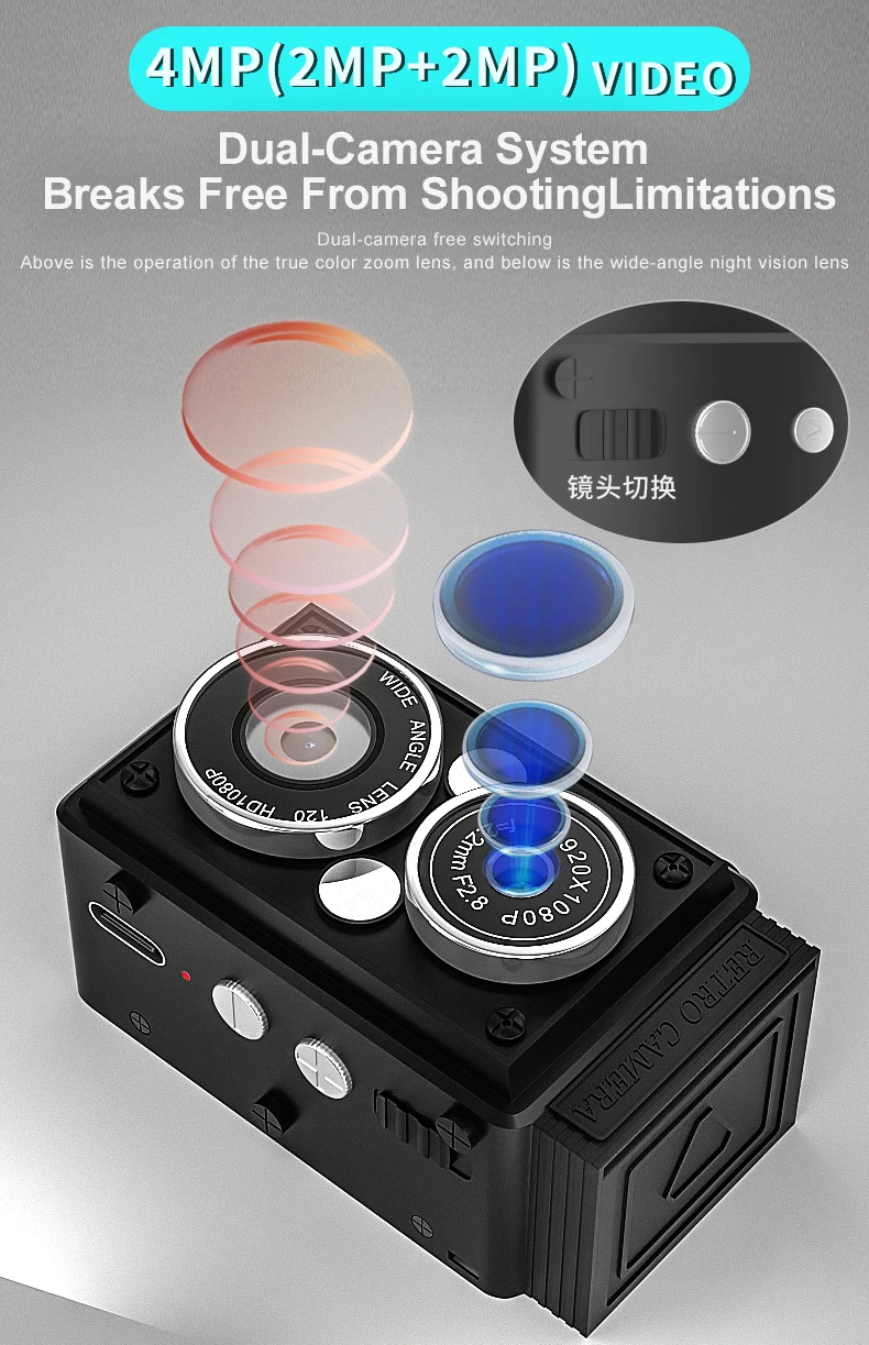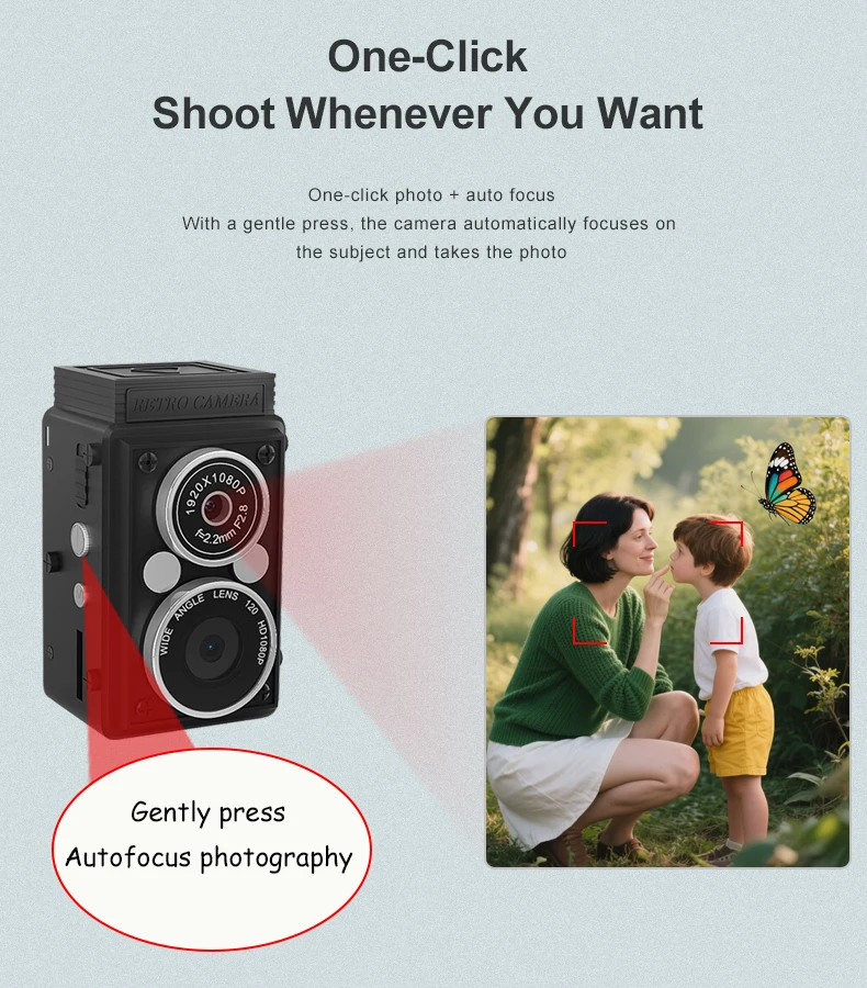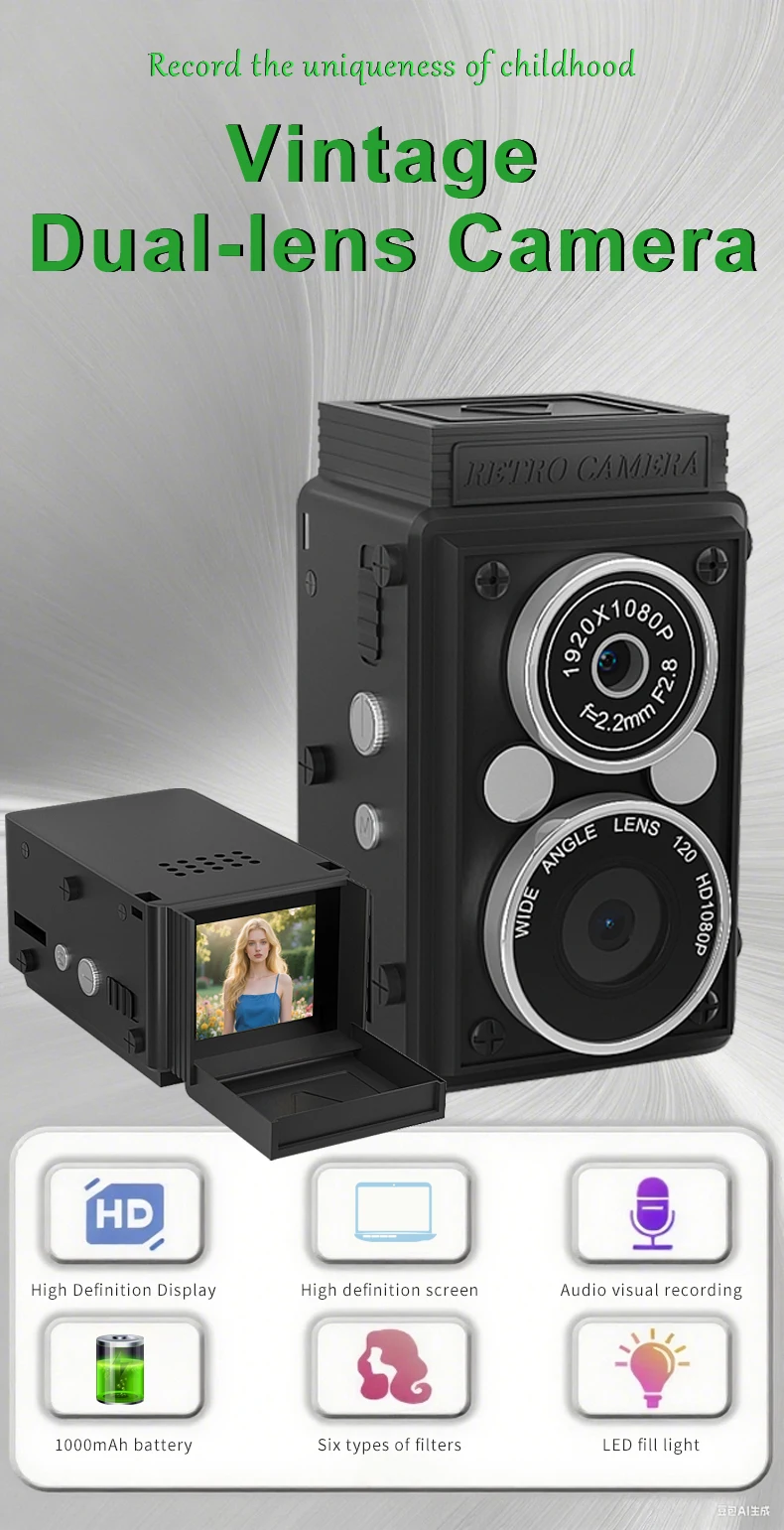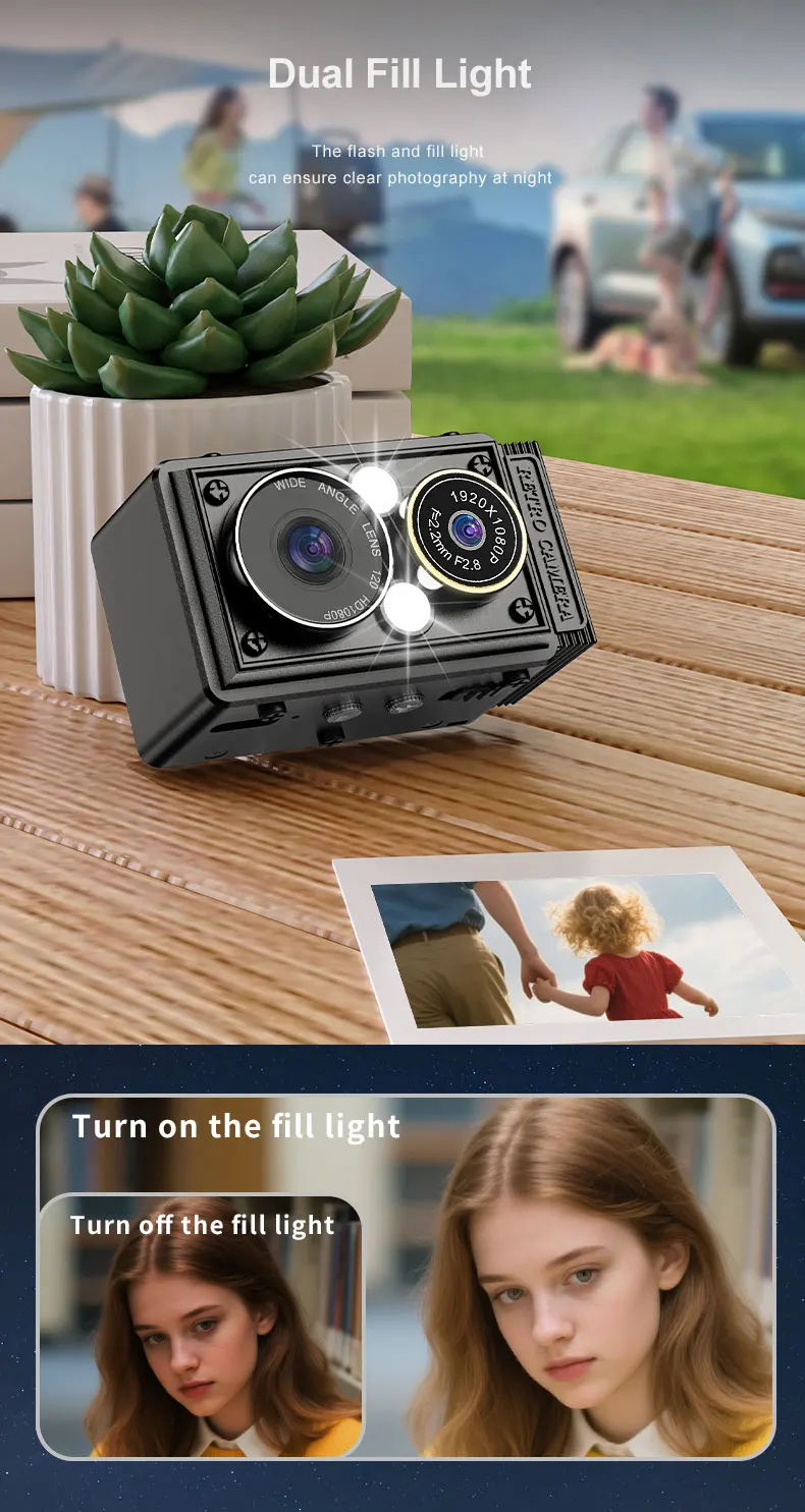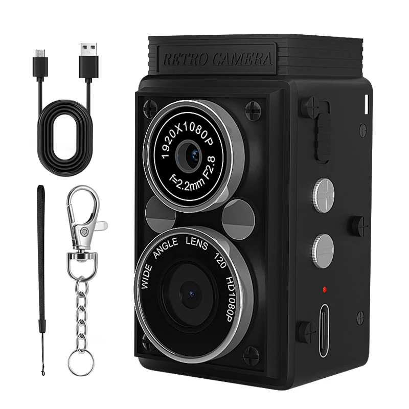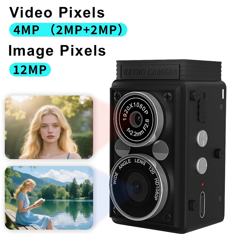 Dual Lens Mini Retro Digital Camera with Screen 1080P Video 12MP Photos Compact Vintage Portable Small CCD Cam for Birthday Gift