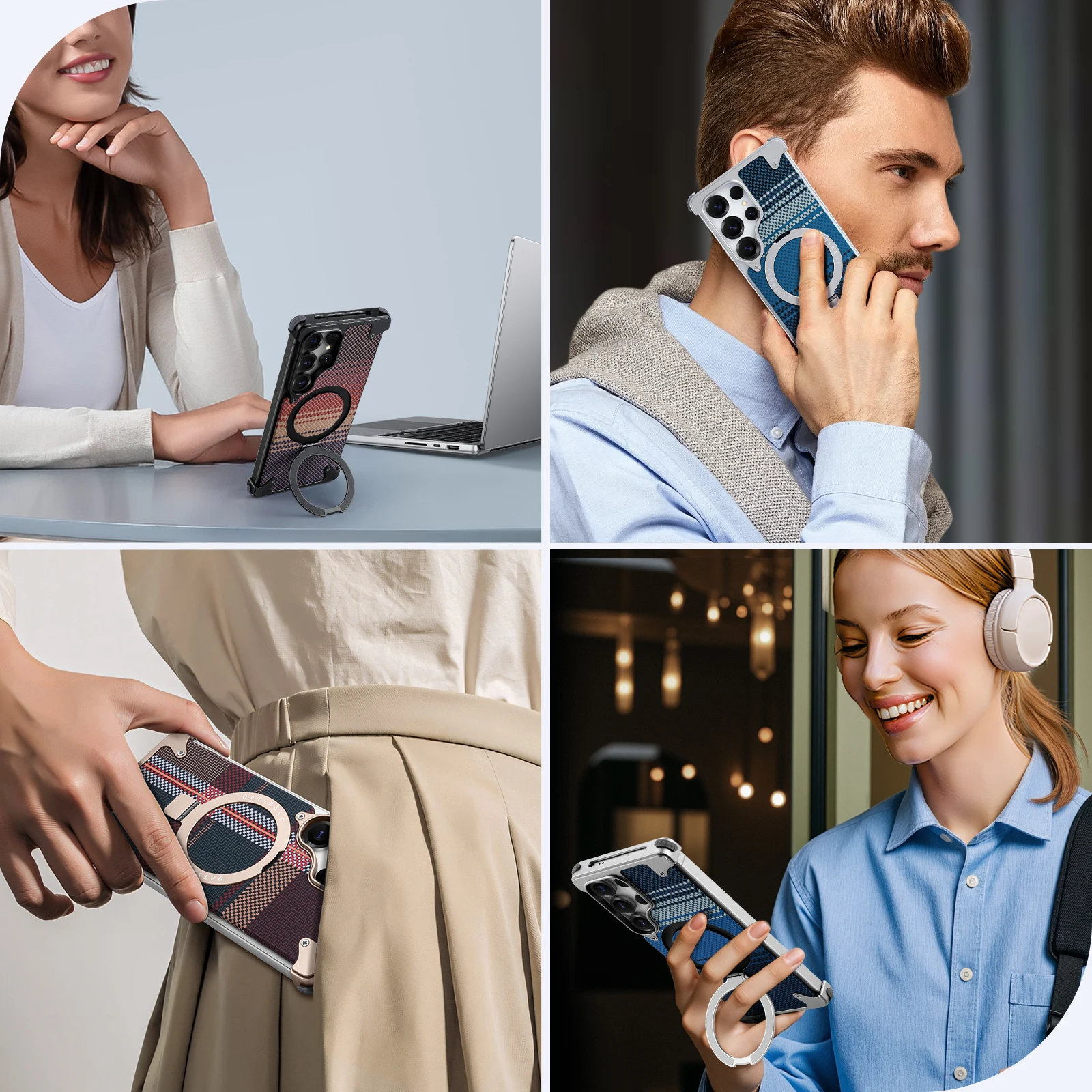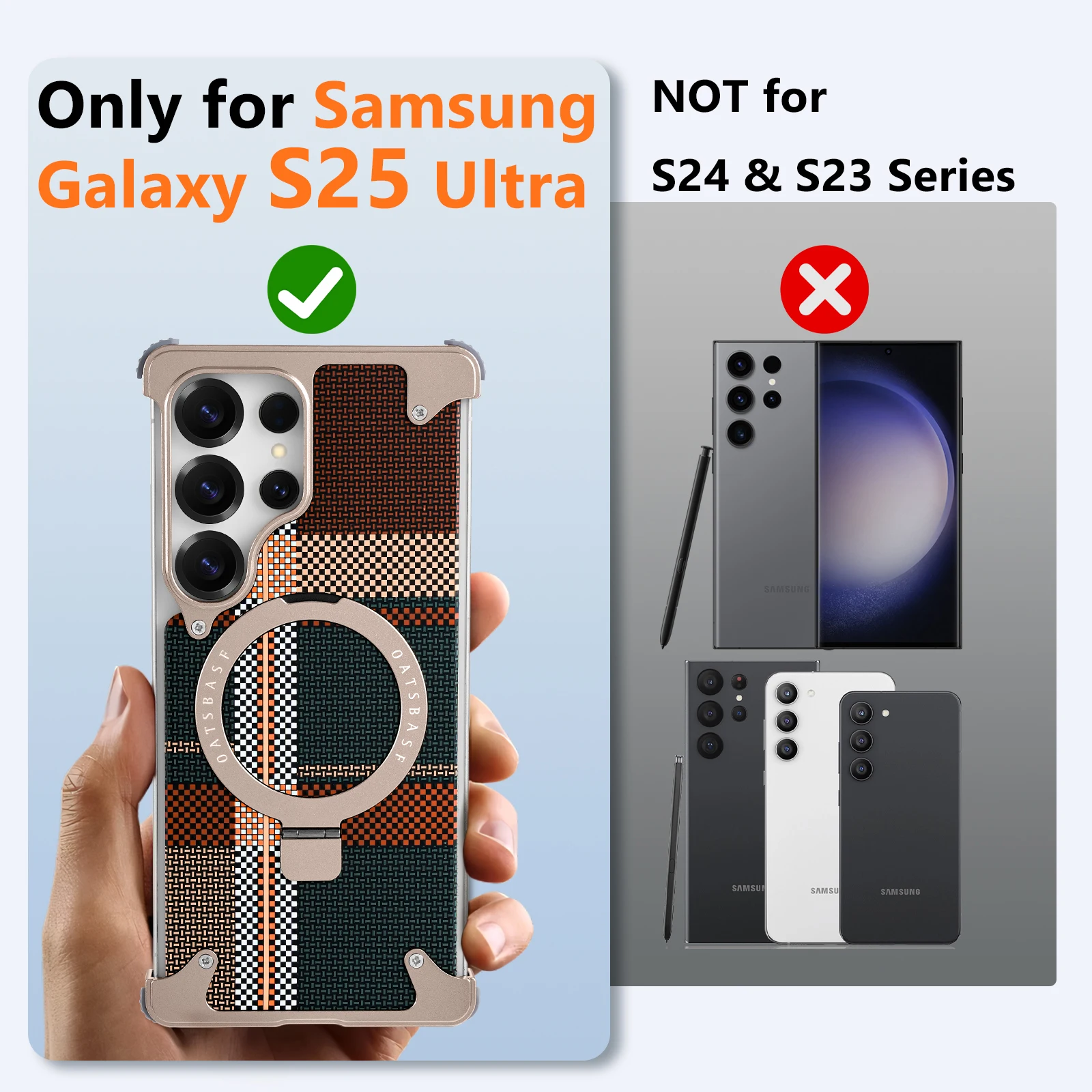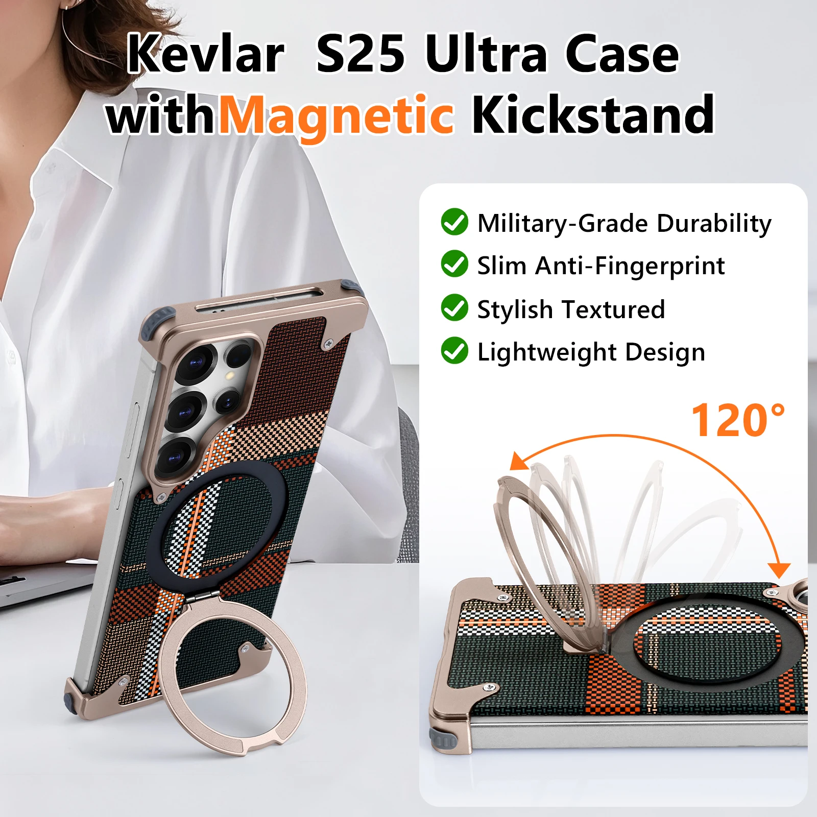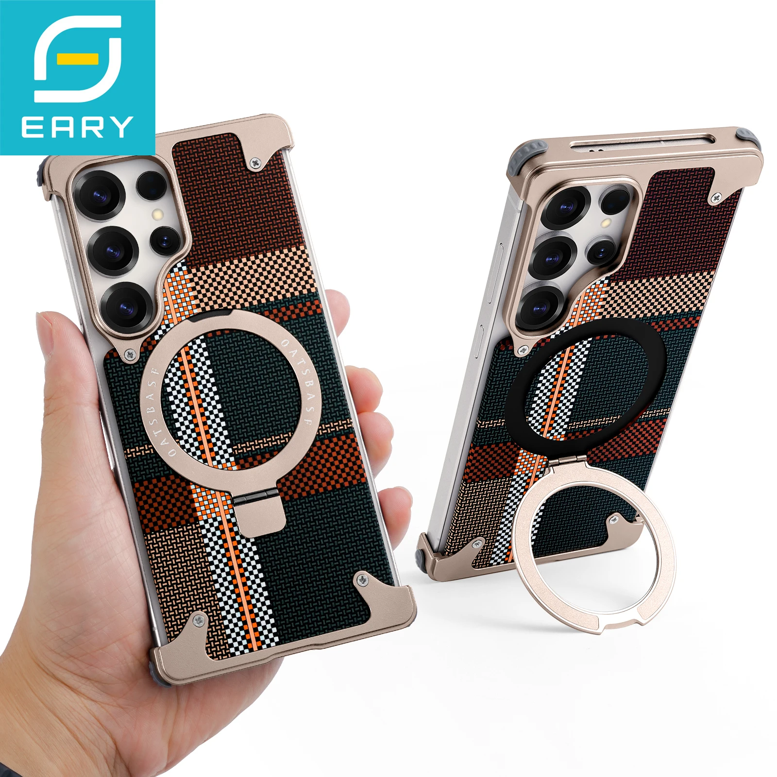 Eary Phone Case for Samsung Galaxy S25 Ultra with Stand Magsafe Carbon Fiber Textured Cover Metal Frameless Shockproof Protector