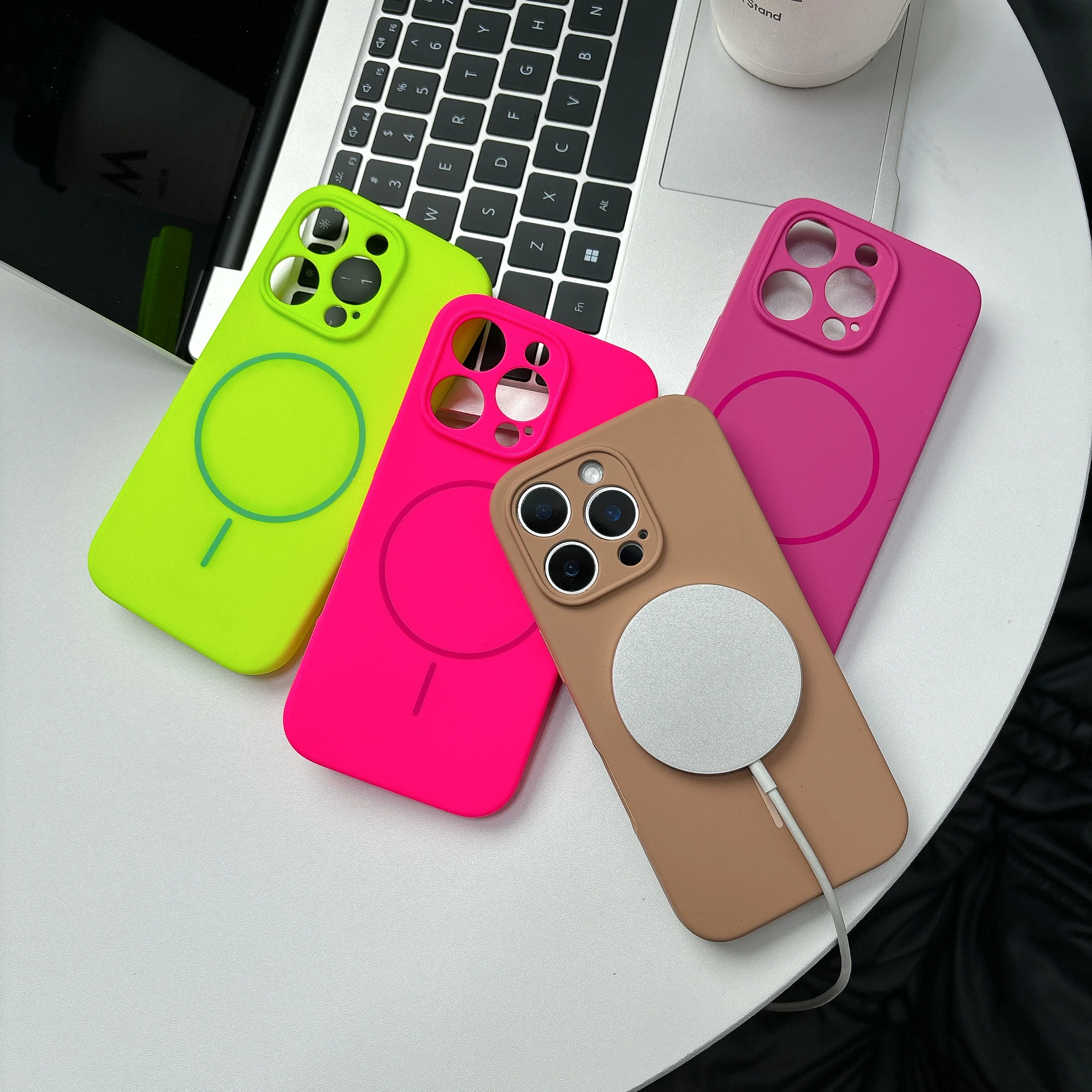Fashion Fluorescent Silicone Magnetic for Magsafe Case For iPhone 17 Air 16 15 14 Plus 13 12 Pro Max Wireless Charge Candy Cover