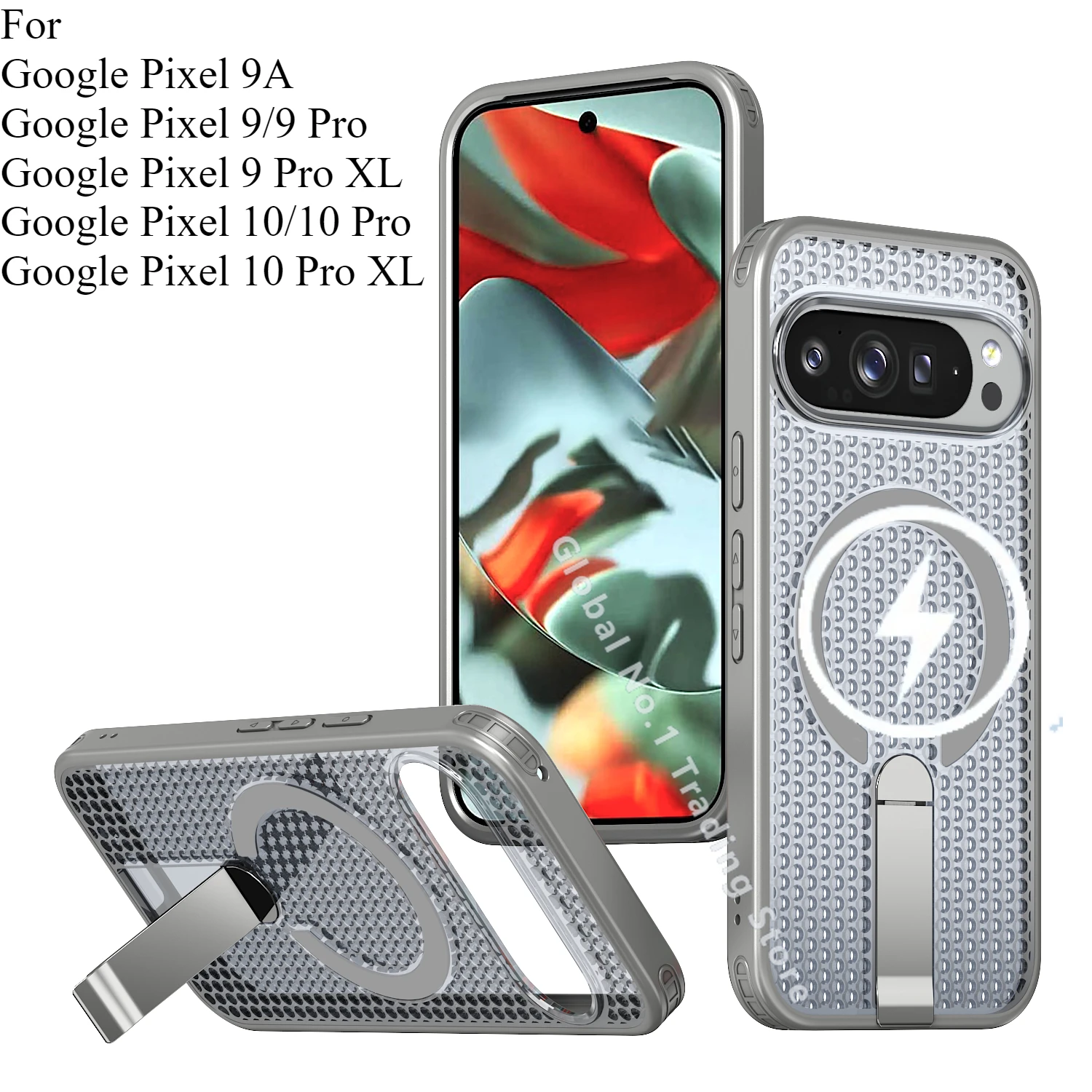 For Google Pixel 10 9 Pro XL 10 9A Transparent particle heat dissipation PC board bracket magnetic phone case protective cover