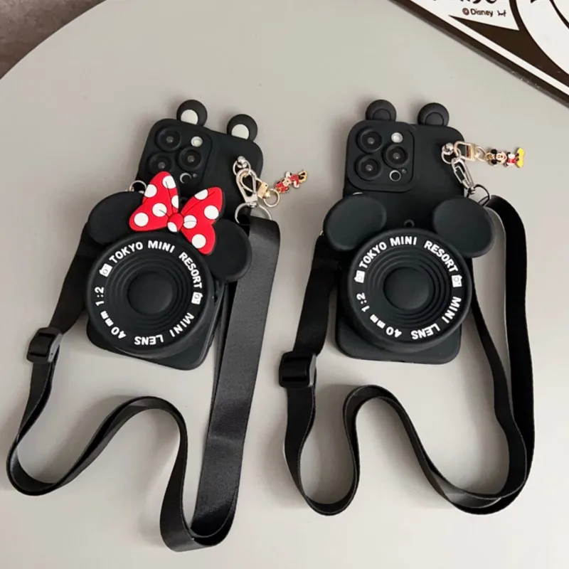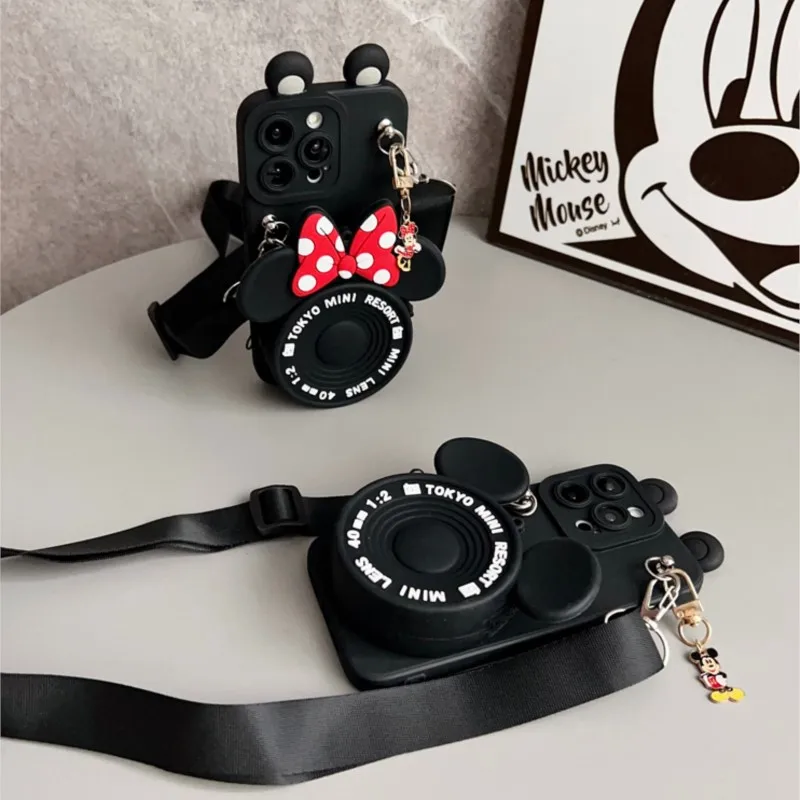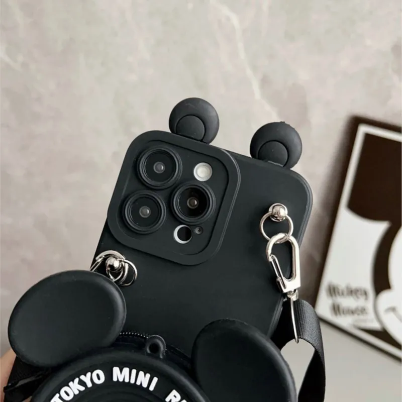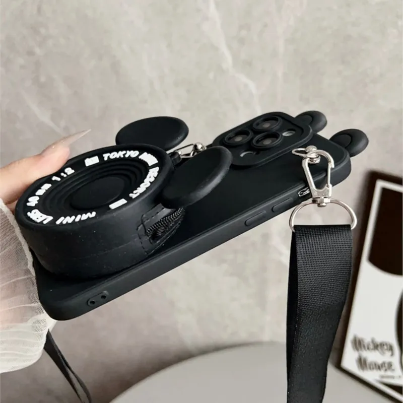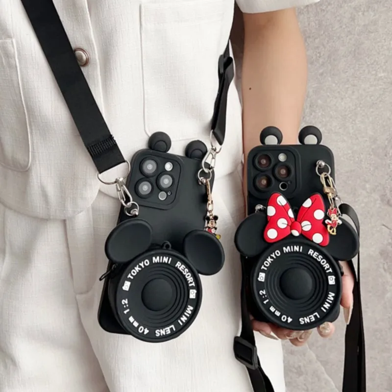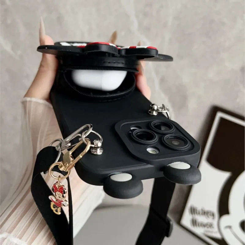 For iPhone 17pro max16 15 14 13 12 11 XR Xs 8 7 6 Pro Max mini Plus17Air Minnie Mickey with Pendant Wallet Lanyard Phone Case