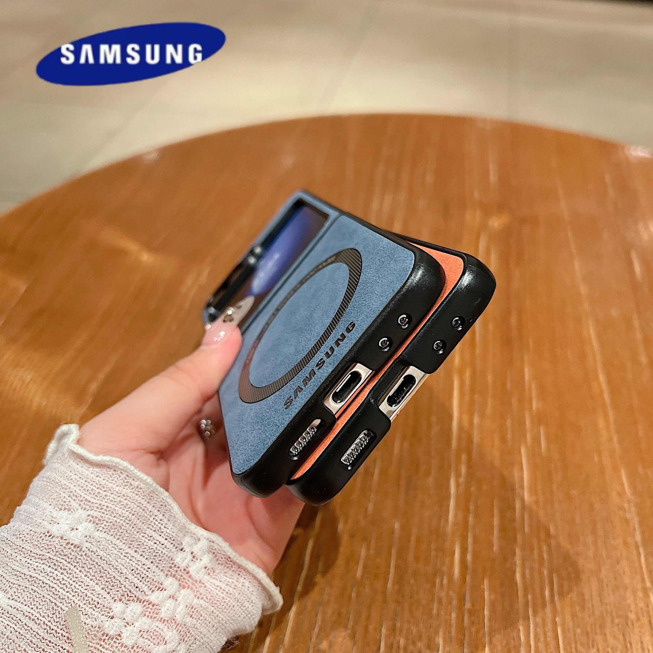 For Magsafe Case Samsung Z Flip 7 6 5 4 Matte PU Leather Samsung Galaxy Z Fold 7 6 5 4 Magnetic Skin Feel Flip 3 Luxury Cover