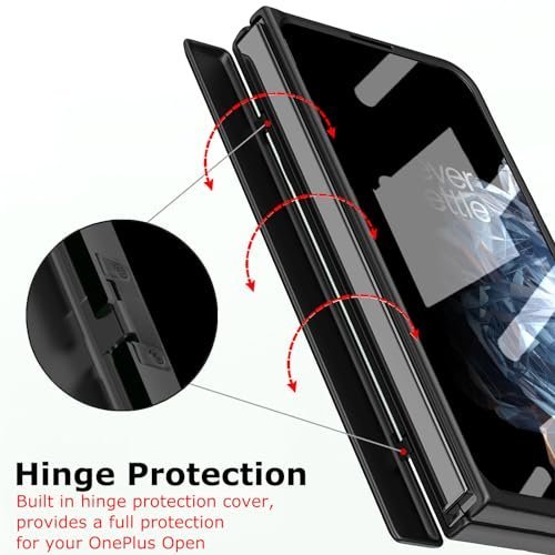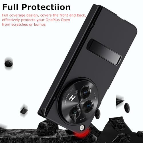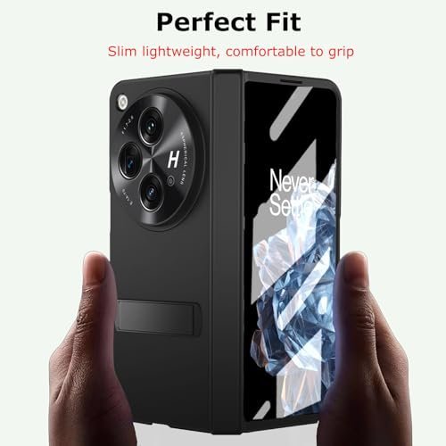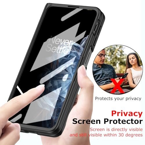 for OnePlus Open Case with Privacy Screen Protector, All-Inclusive Phone Case with Hinge Protection Screen Protector Scratch-Resistant Kickstand Hard PC Protective Cover for OnePlus Open Black