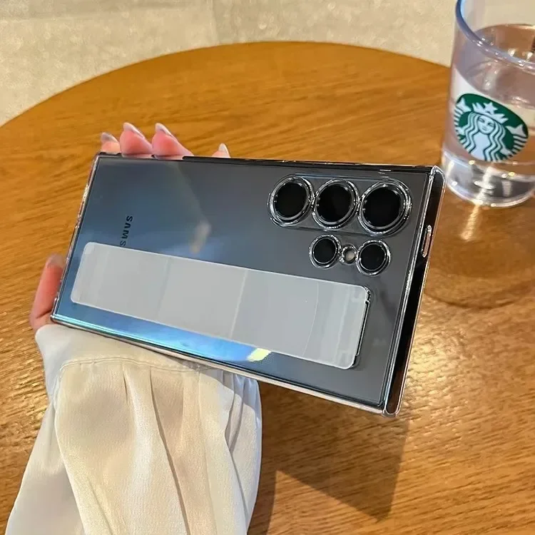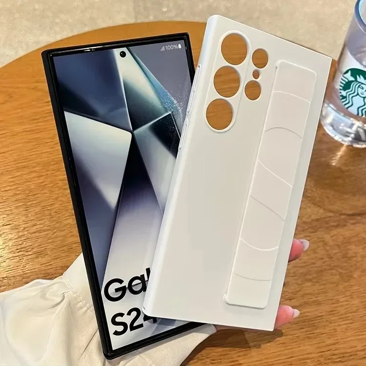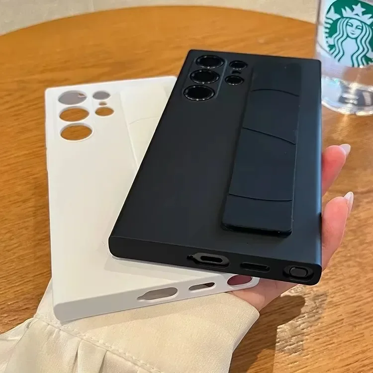 For Samsung Galaxy S24 S23 S25 Ultra S25 Plus Luxury Silicone Wrist Strap Matte Frosting Camera Protection Hard PC Back Cover