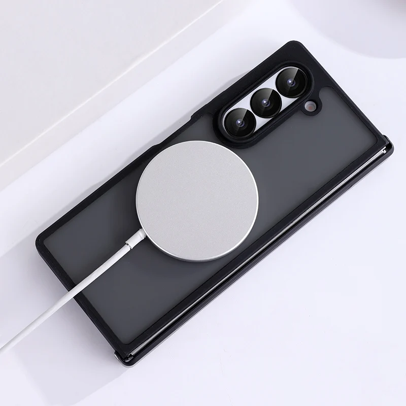 For Samsung Galaxy Z Fold 4 5 6 7 Magsafe Case Transparent Hinge Folding Shockproof Magnetic Wireless Charging Cover Accessories