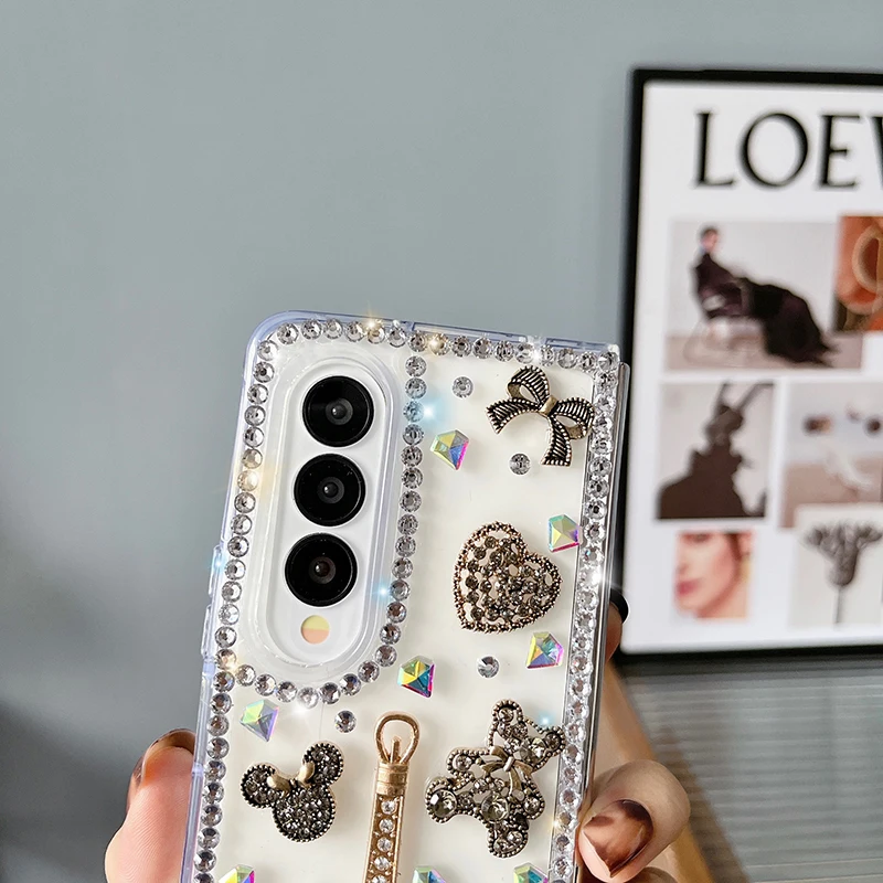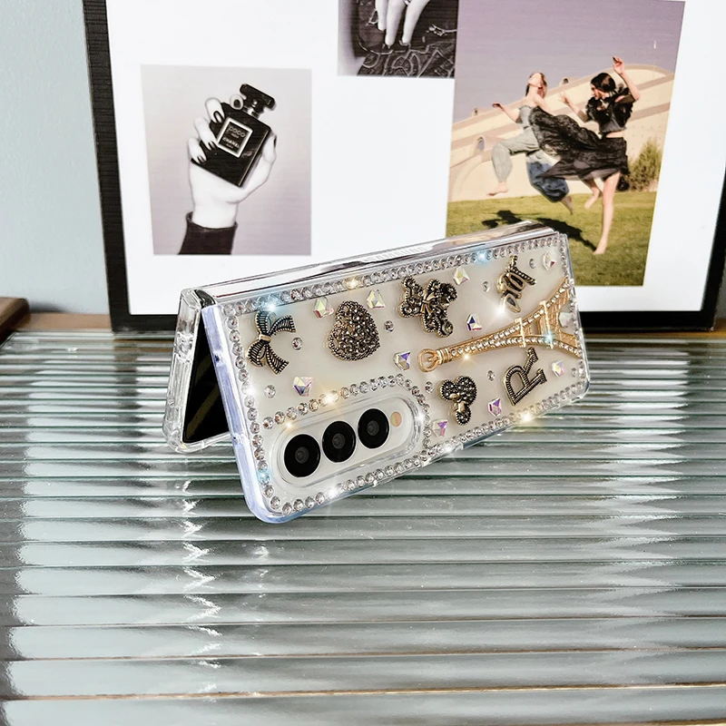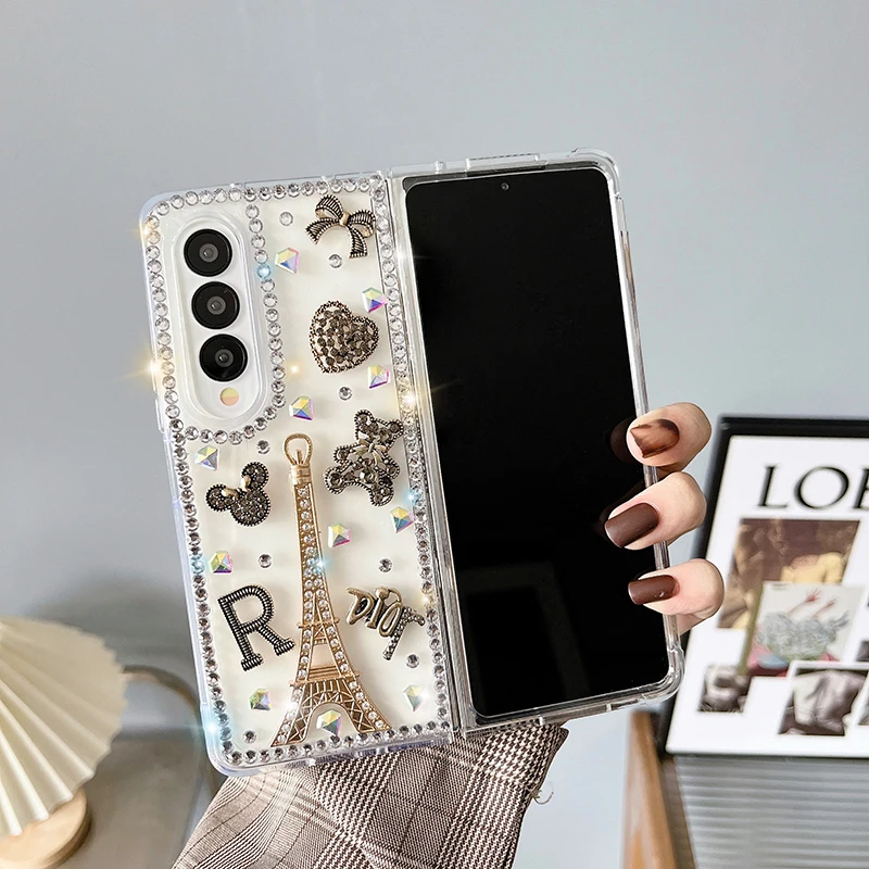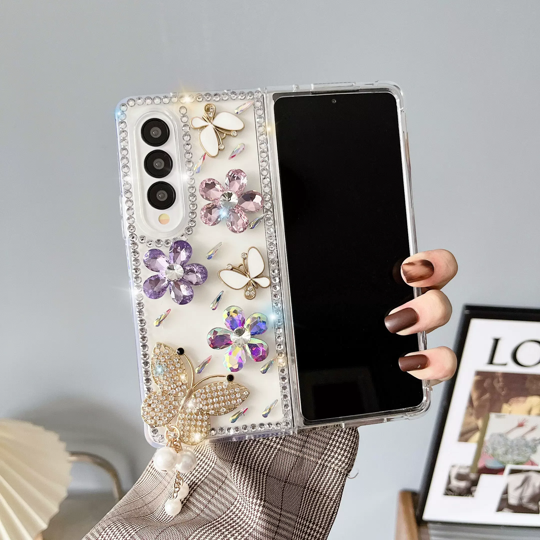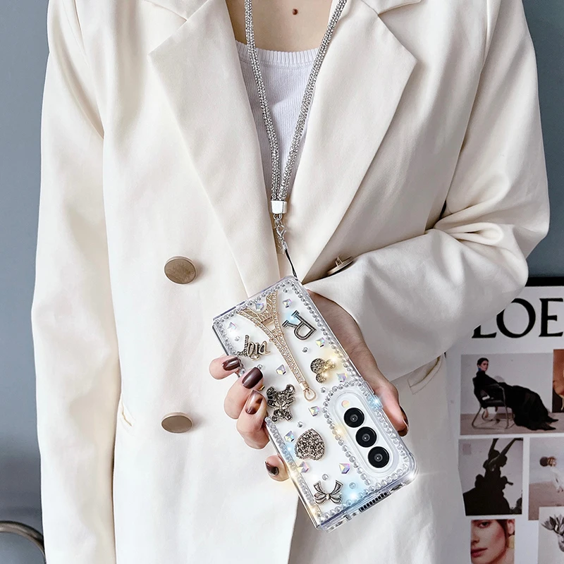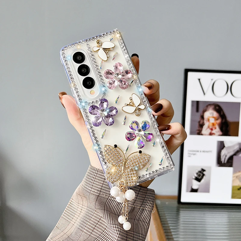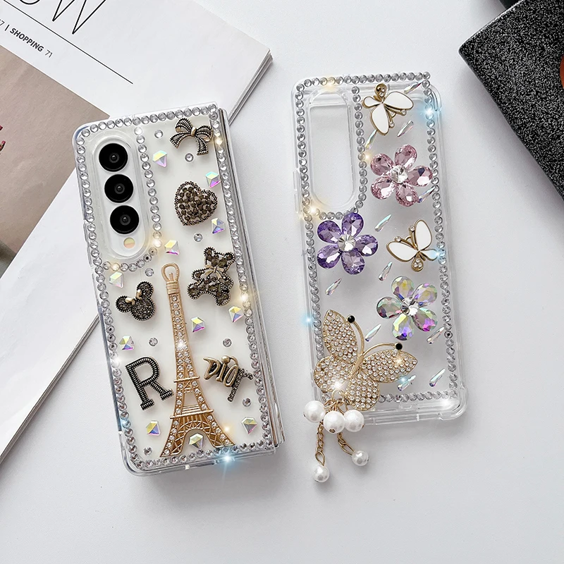 For Samsung Galaxy Z Fold 4 Z Fold 3 Z Fold 2 DIY DIY Diamond Tower Butterfly Pearls Rope Transparent Mobile Phone Case Cover
