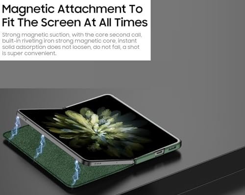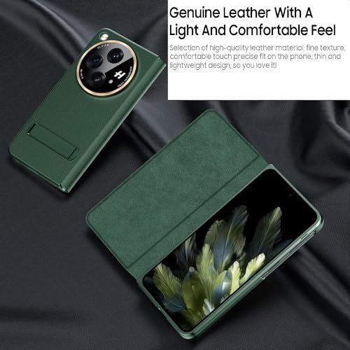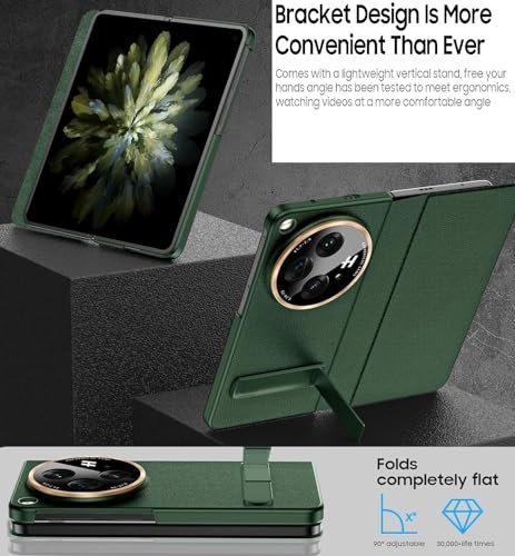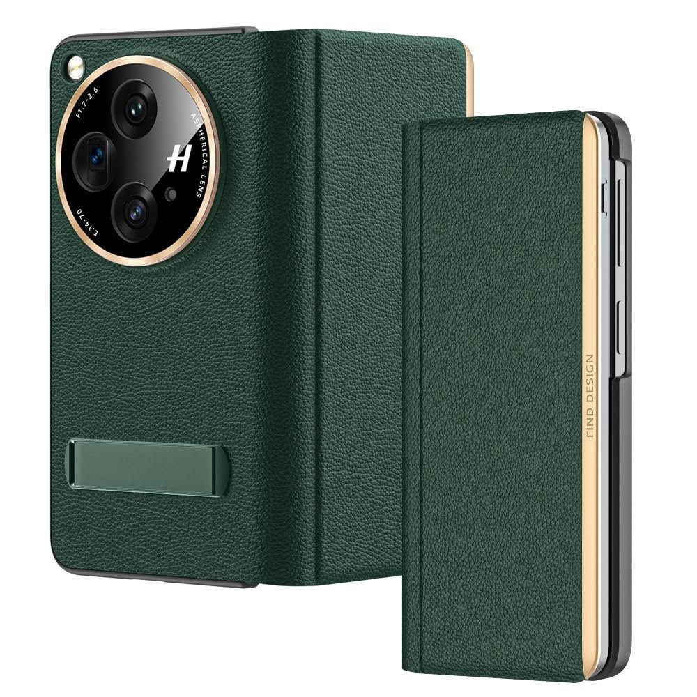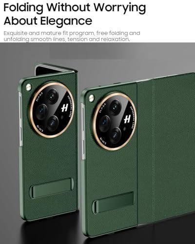 Gaffar India Magnetic Leather Flip Cover with Hinge Protection Compatible with OnePlus Open (Release 2023) Hard PC Built-in Kickstand Camera Protection Case, Green