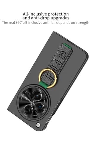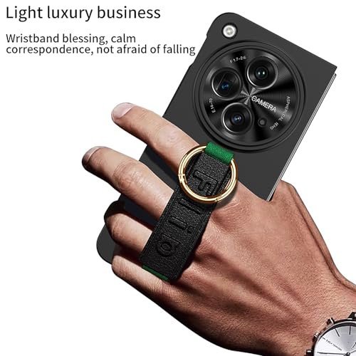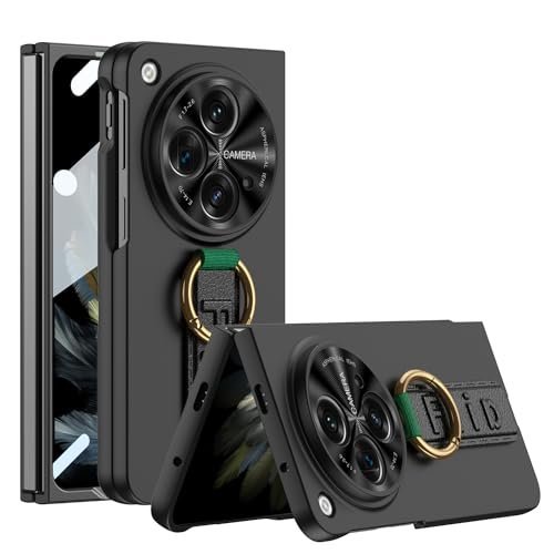 Gaffar India Wrist Strap Cover with Ring Holder Compatible with OnePlus Open/Oppo Find N3 with Built-in Tempered Glass Front Case Hard PC Slim Fit Camera Lens Protection, Black