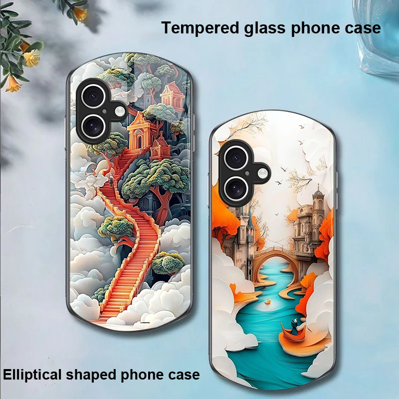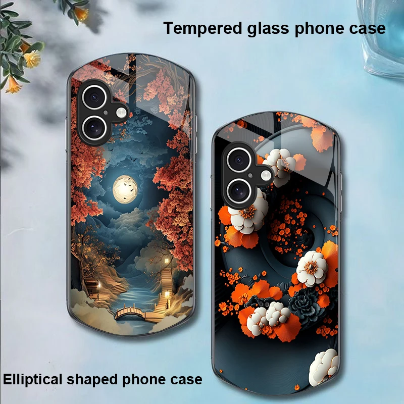 Golden Leaf Black For Apple IPhone 16 11 13 15 14 Pro Max 12 Mini 7 8 Plus XR X XS Elliptical Shaped Tempered Glass Phone Case