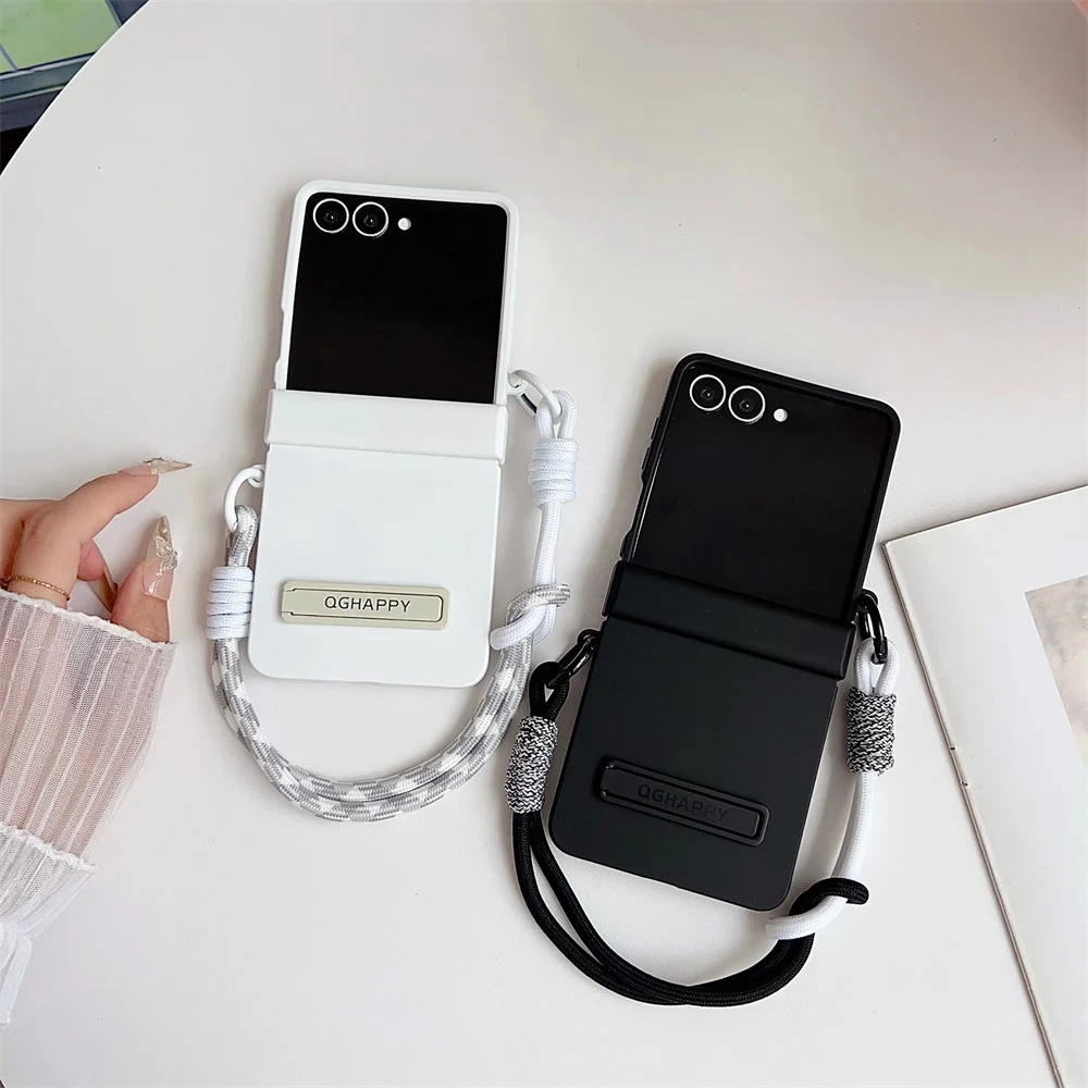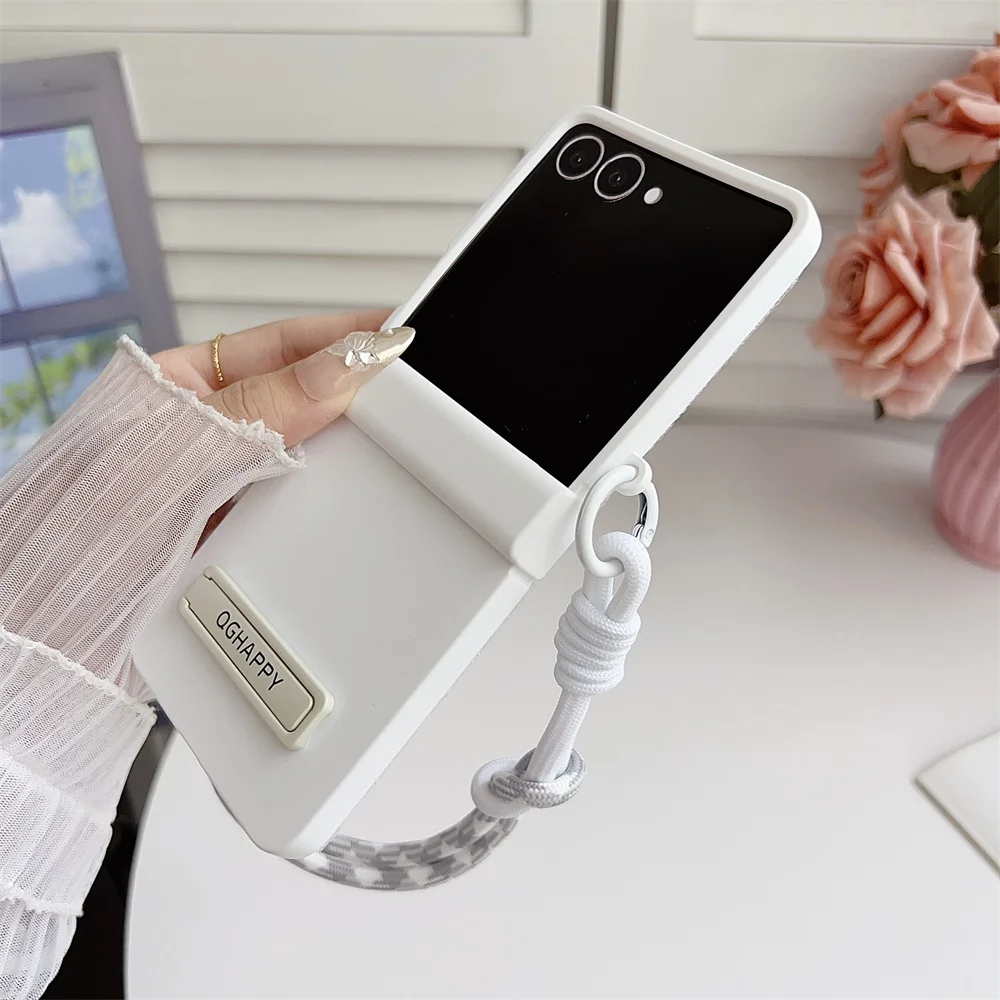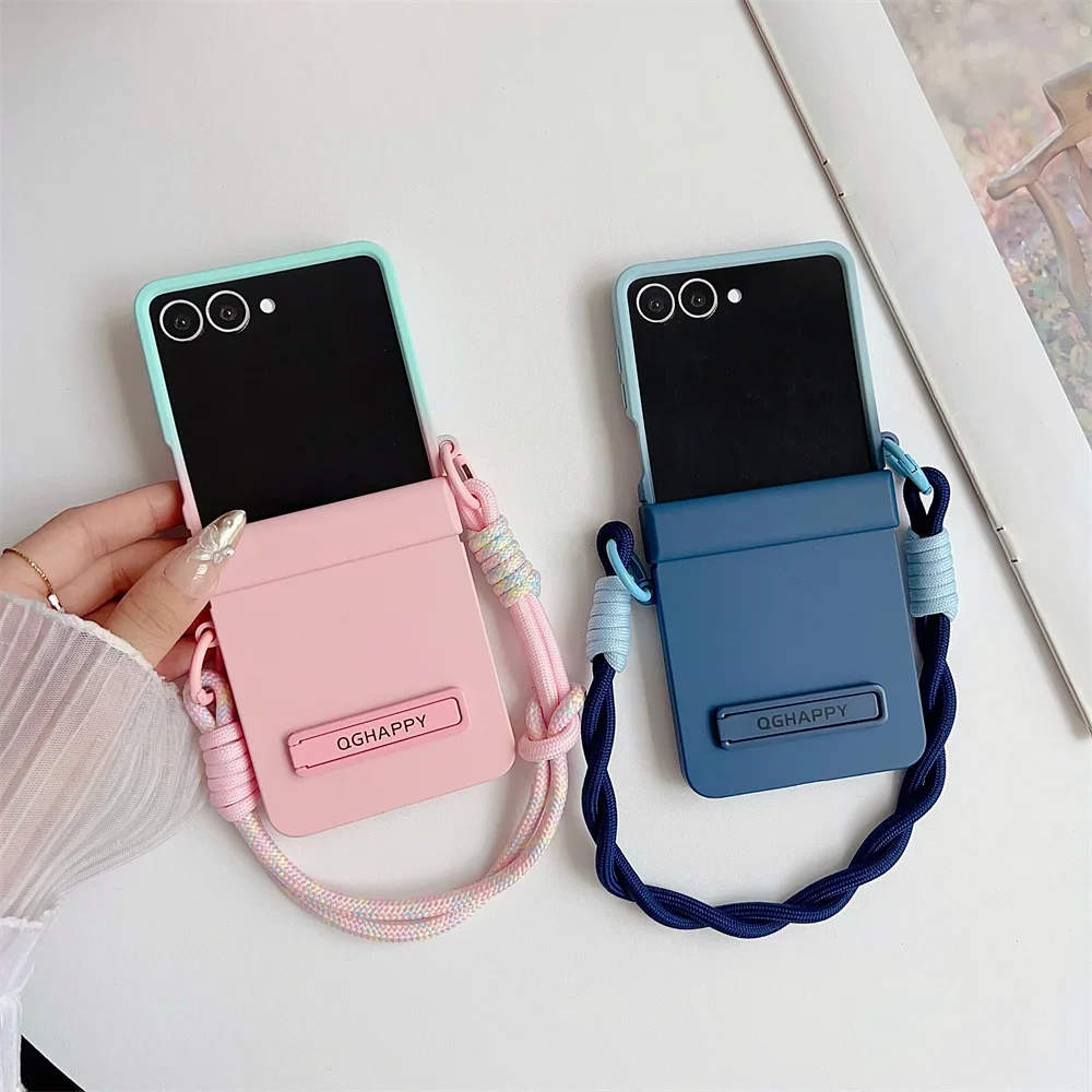 Gradient Candy Color Bracket Wrist Strap Phone Case For Samsung Galaxy Z Flip 7 FE 6 5 4 3 Hinge Protection Matte Hard Cover
