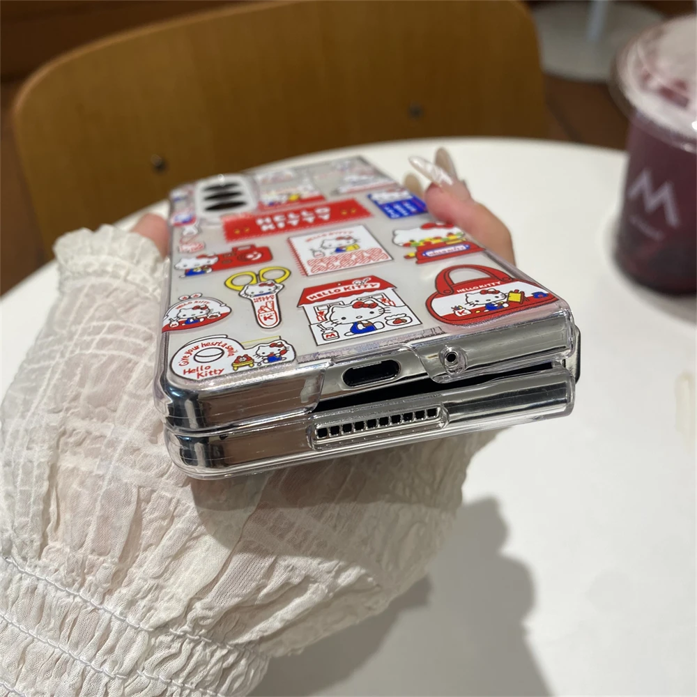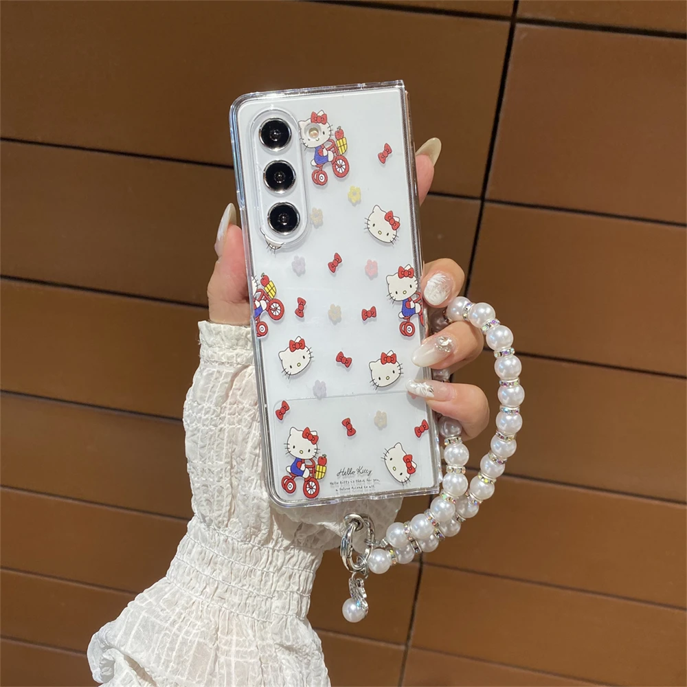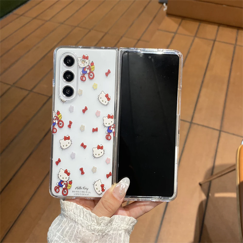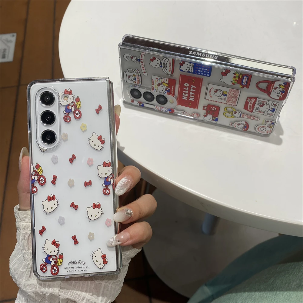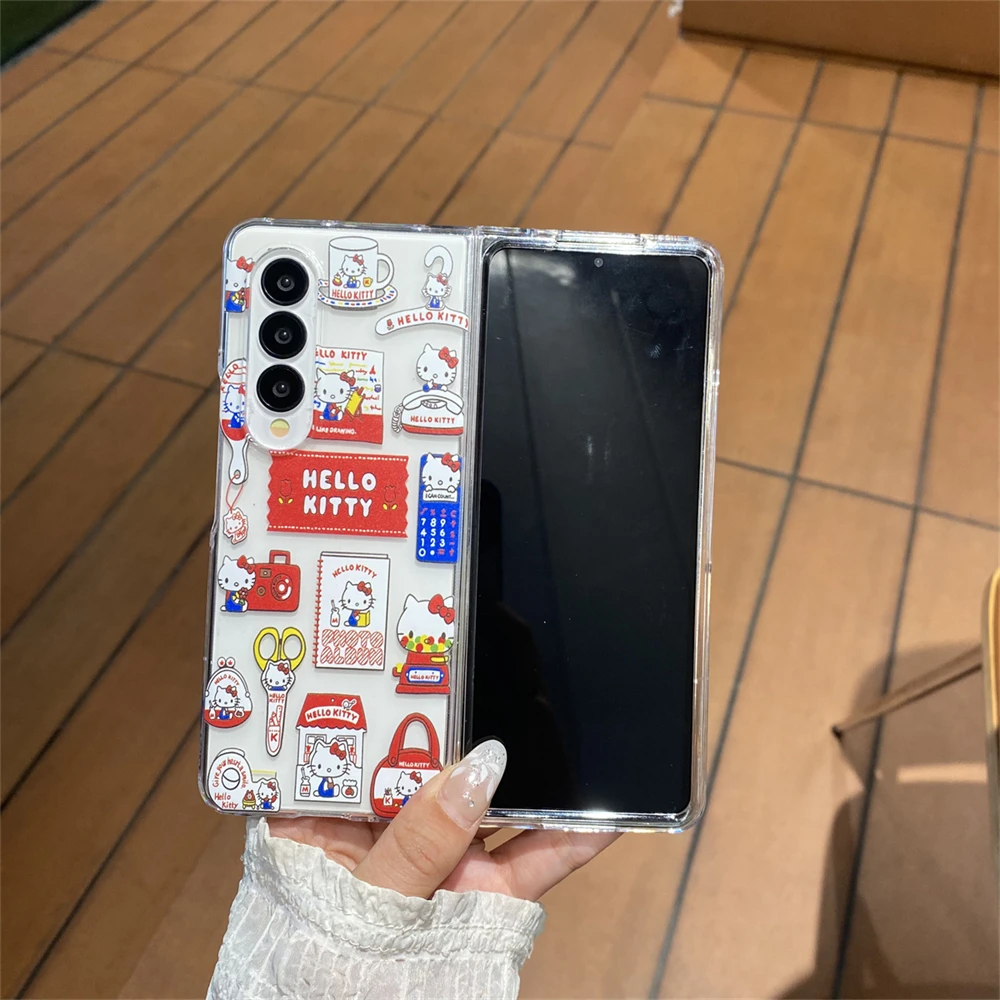 Hello Kitty Transparent Phone Case for Samsung Galaxy Z Fold 7 6 5 4 3 Fold5 Fold6 Fold7 Protection Acrylic PC Cover