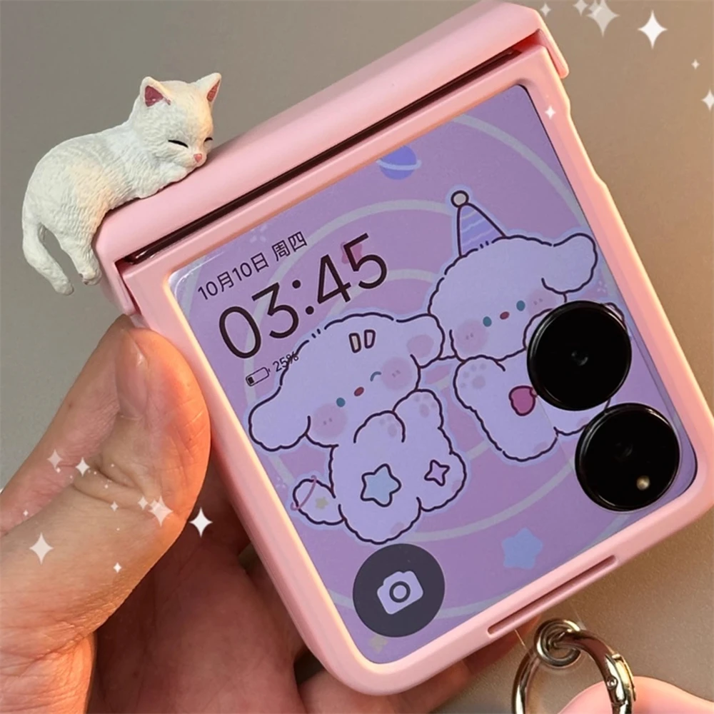 Japan Korea Cute 3D Sleeping Kitten Phone Case For Samsung Galaxy Z Flip 7 Flip 6/5/4/3 For Motorola Razr 60 40 50 Ultra