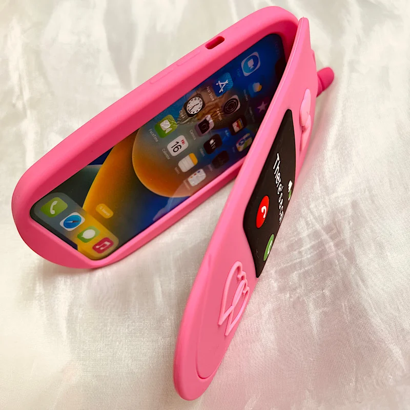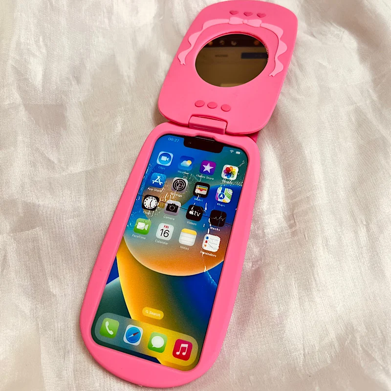 Korean Cute 3D Pink Cellphone Model Flip Mirror Silicone Phone Case For iPhone 15 14 13 12 Pro Max 11 Shockproof Soft Cover