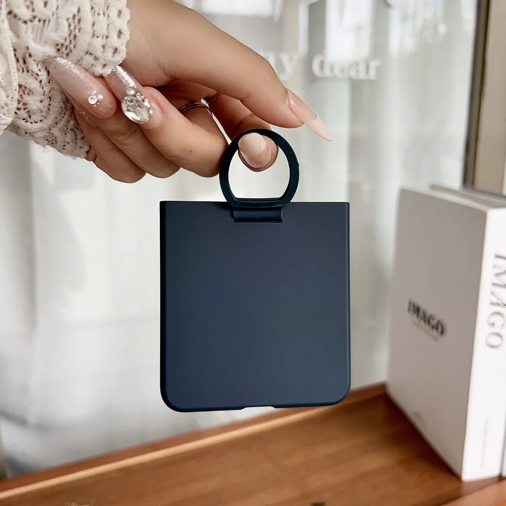 Liquid Silicone Large Window Phone Case For Samsung Galaxy Z Flip7 Flip 5 6 7 Flip7fe Fashion Ring Design Shockproof Soft Funda