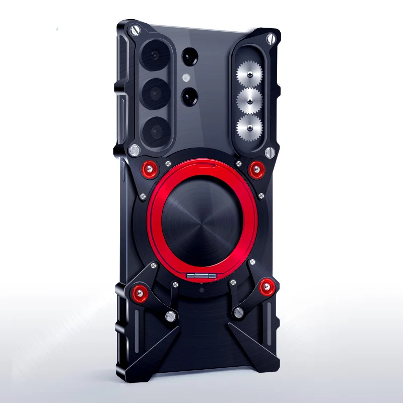 Luxury Hollow Metal Case for Samsung Galaxy S25 Ultra S23 S24 S22 plus – Aluminum Bumper 360° Bracket Built-in with Protector