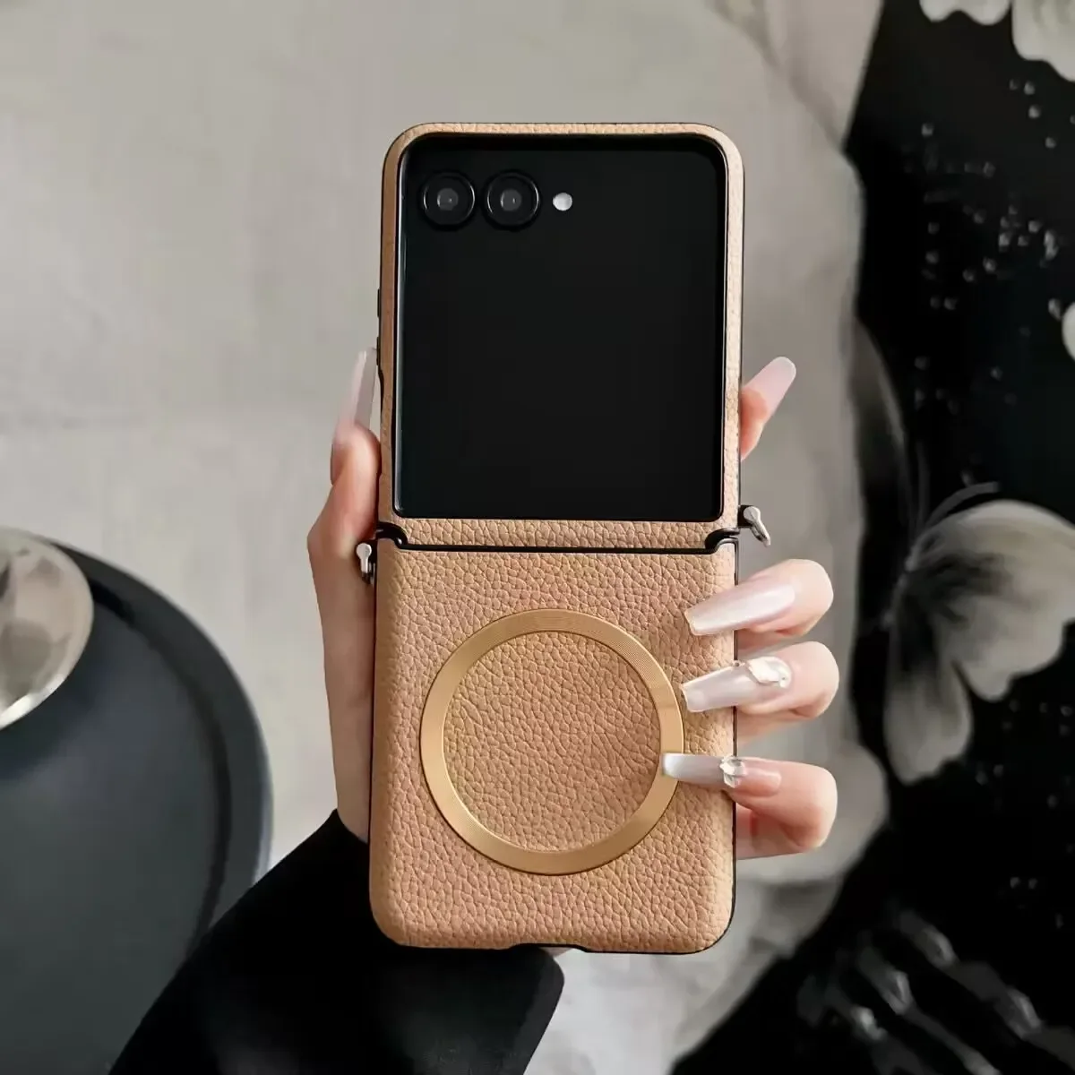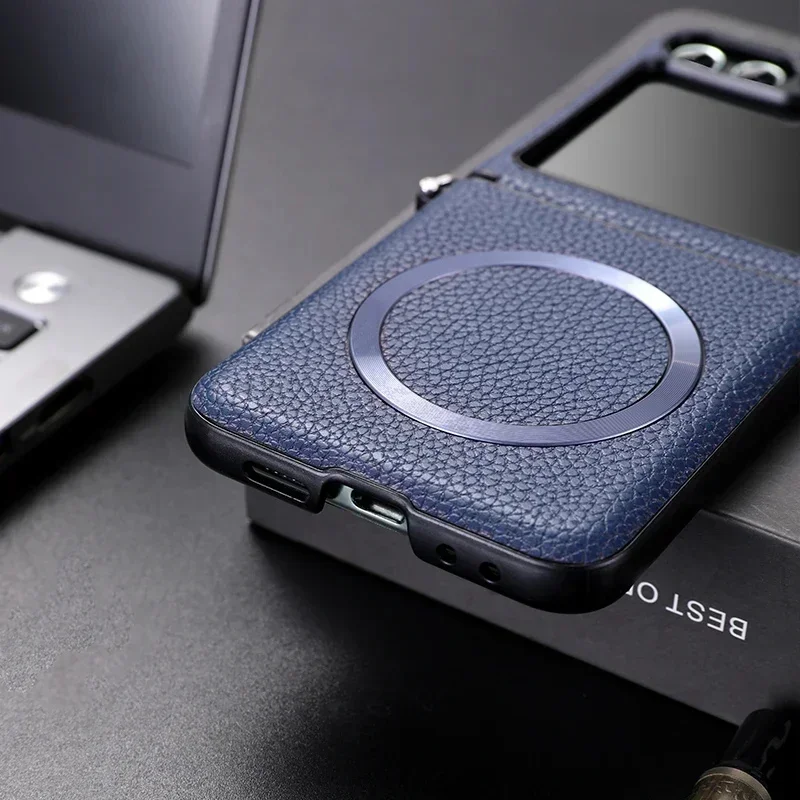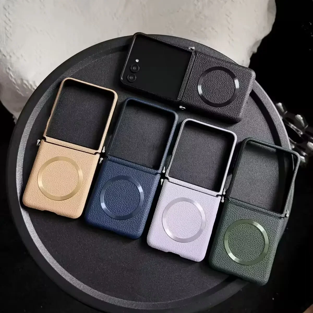 Luxury Litchi PU Leather Magsafe Wireless Charge Case for Galaxy ZFlip 7 6 Flip 3 4 5 ZFlip4 Zflip5 Magnetic Shockproof Cover