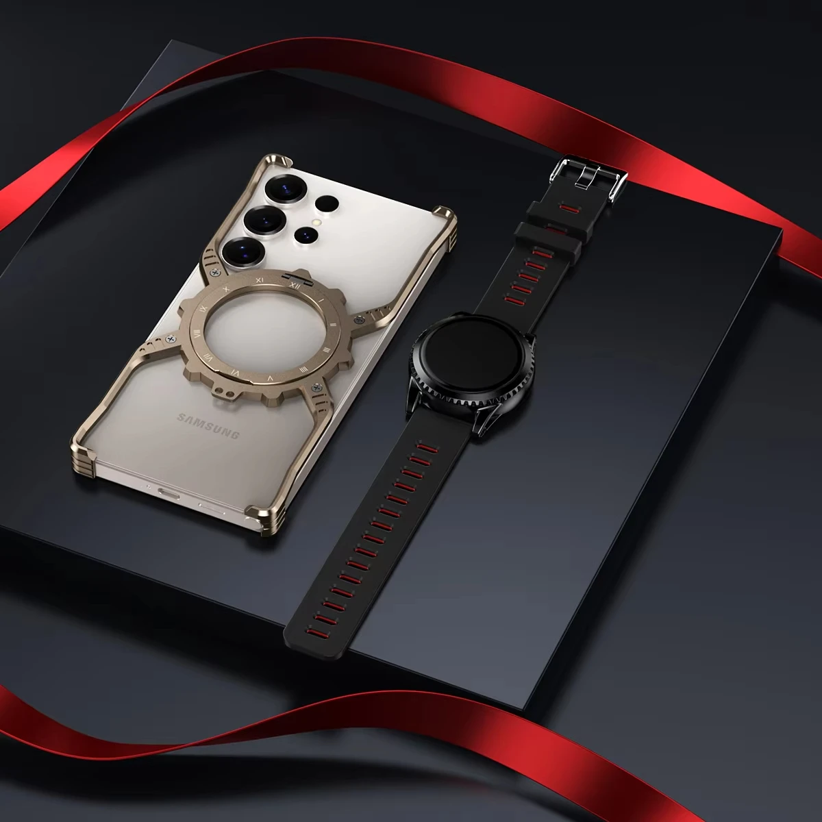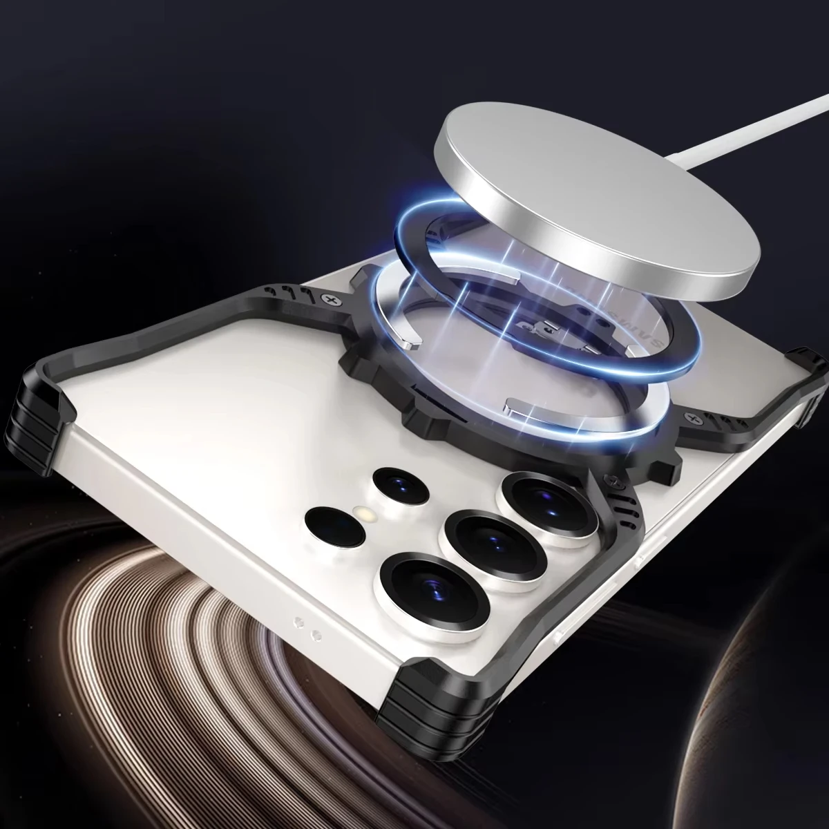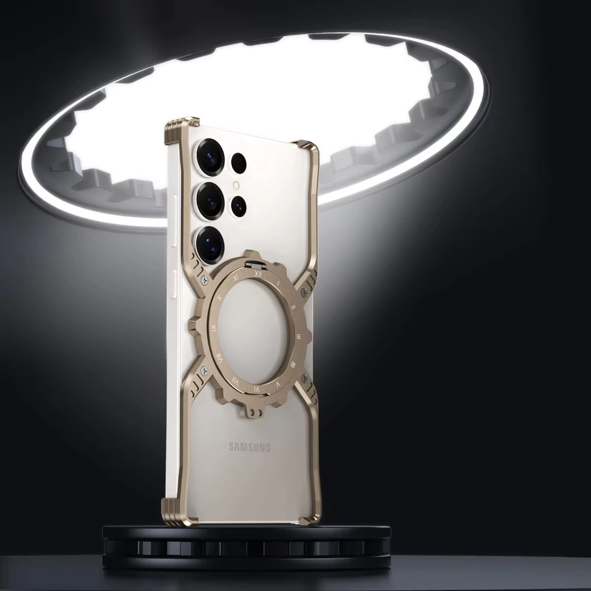 Luxury Metal Magnetic Luminous Stand Phone Case For Samsung Galaxy S25 S24 S23 S22 Ultra Aluminum Hollow Rimless Bumper Cover