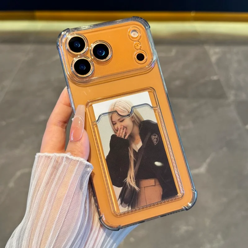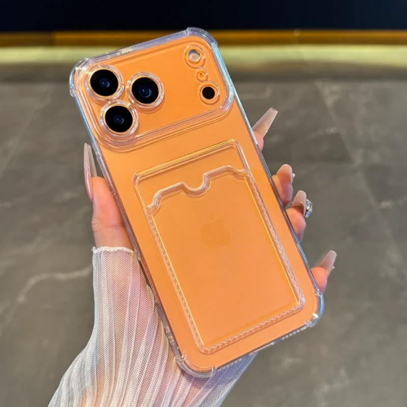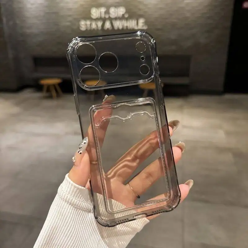 Luxury Soft Card Bag Phone Case For iPhone 17 Air 16 15 14 13 12 11 Pro Max X XS Max XR 7 8 Plus SE 3 Transparent Bumper Cover