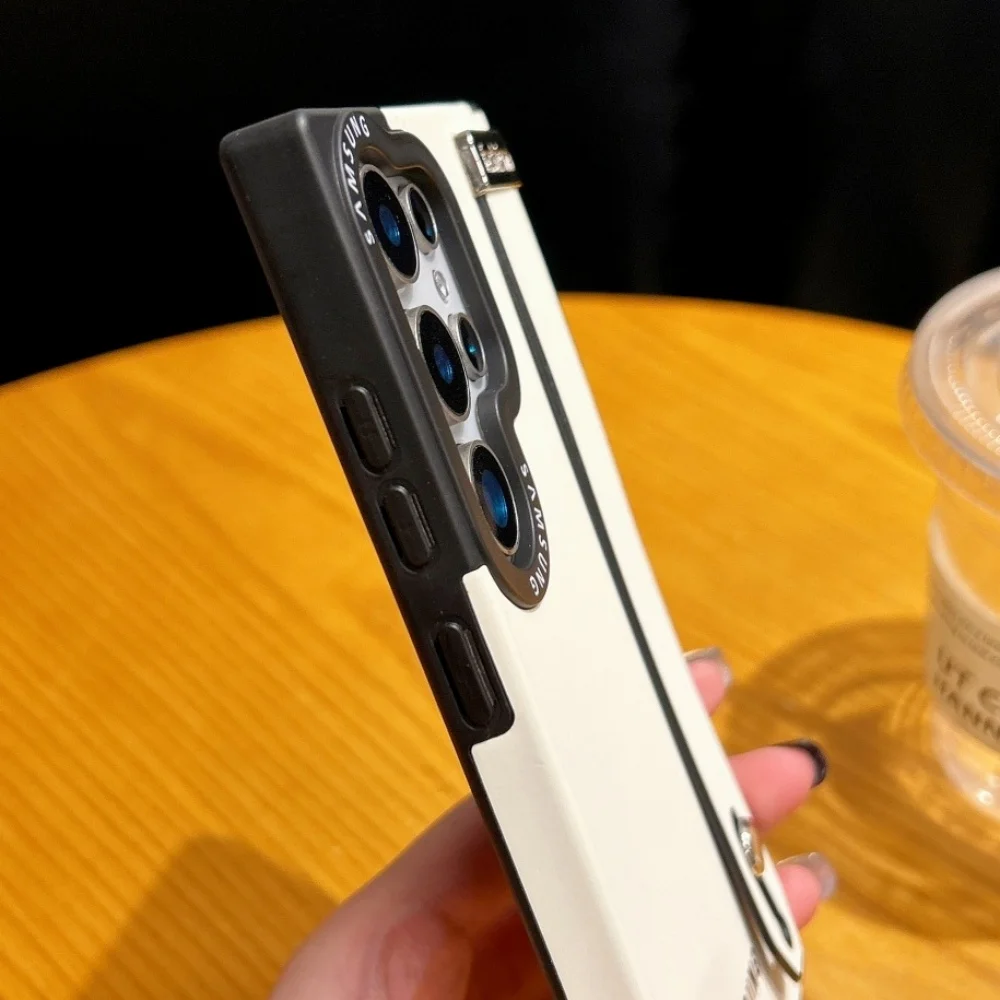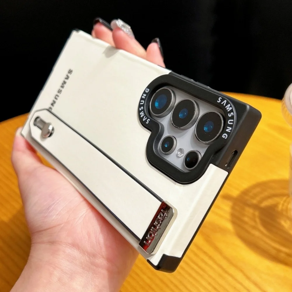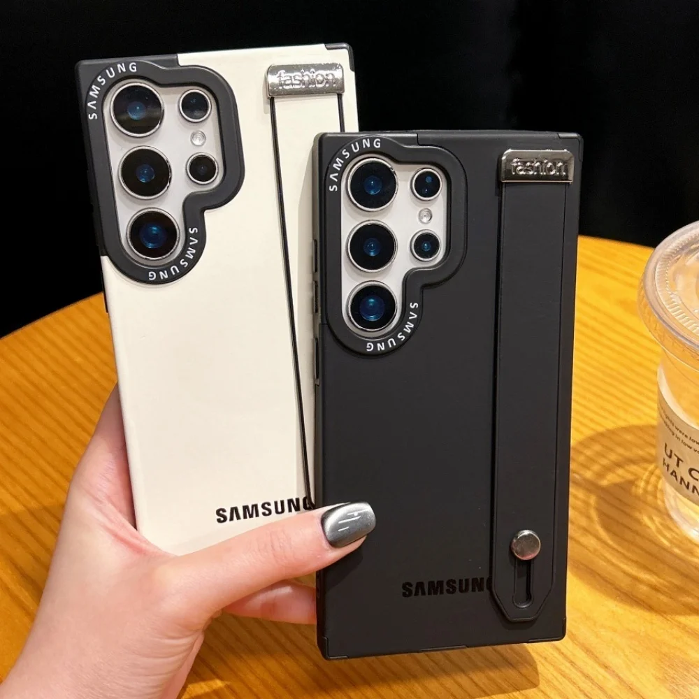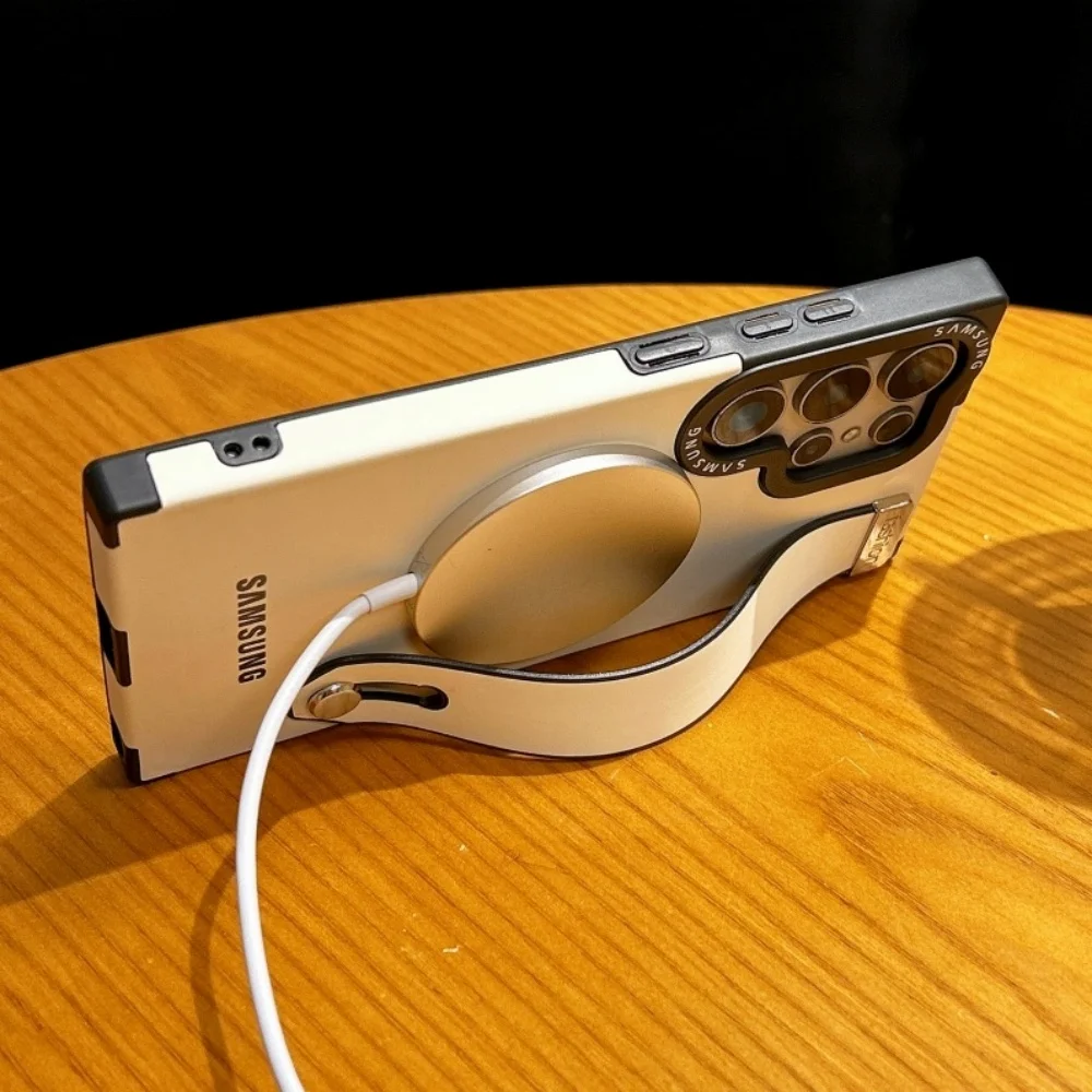 Luxury Suede Leather Wrist Strap Bracket Holde Stand For Magsafe Case Samsung Galaxy S25 S24 S23 S26 Ultra Plus Magnetic Cover
