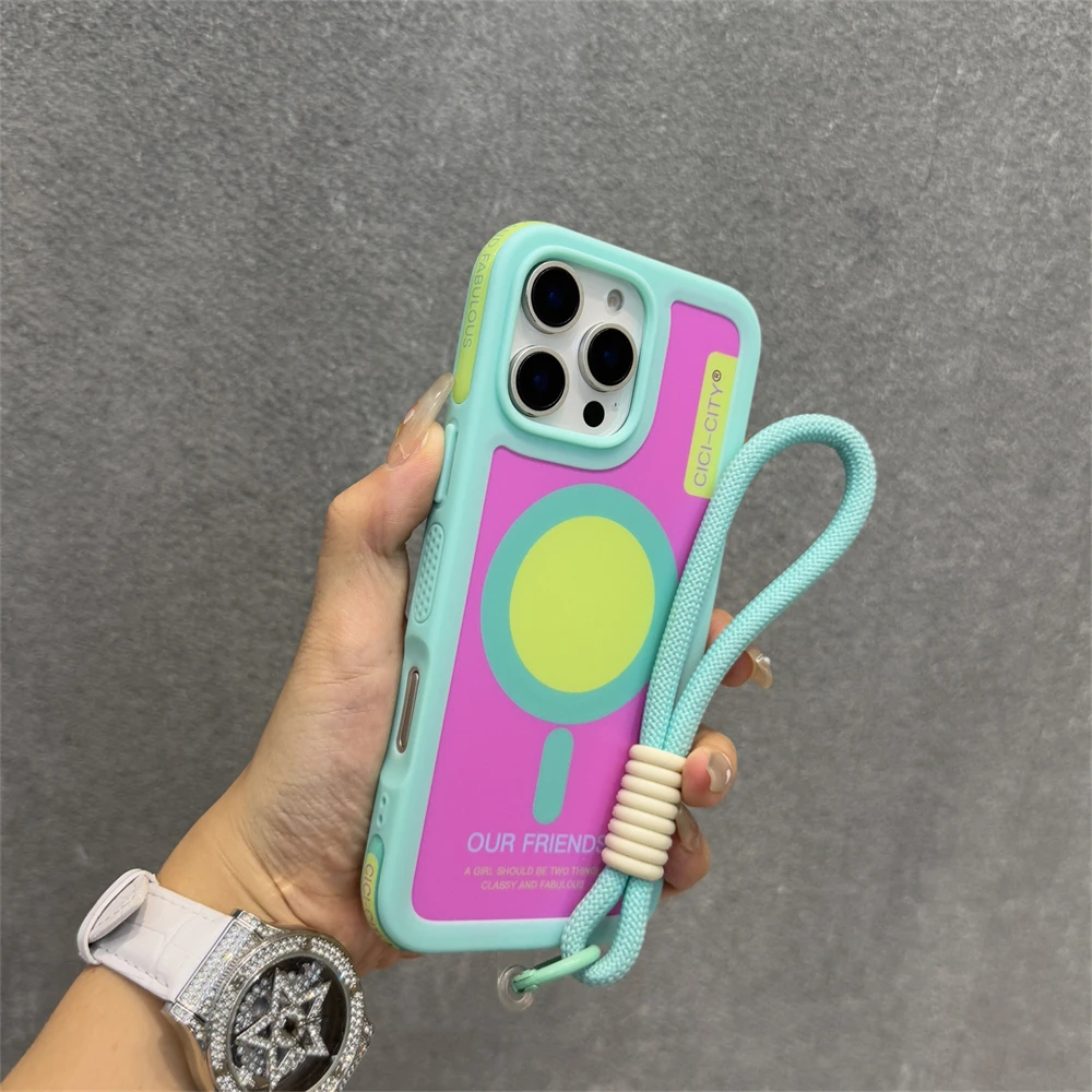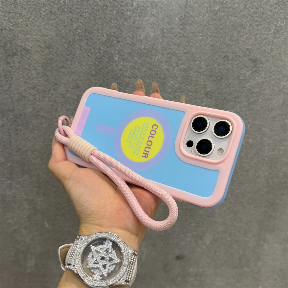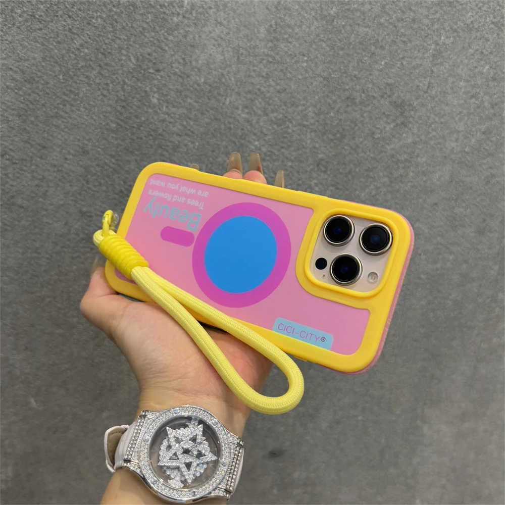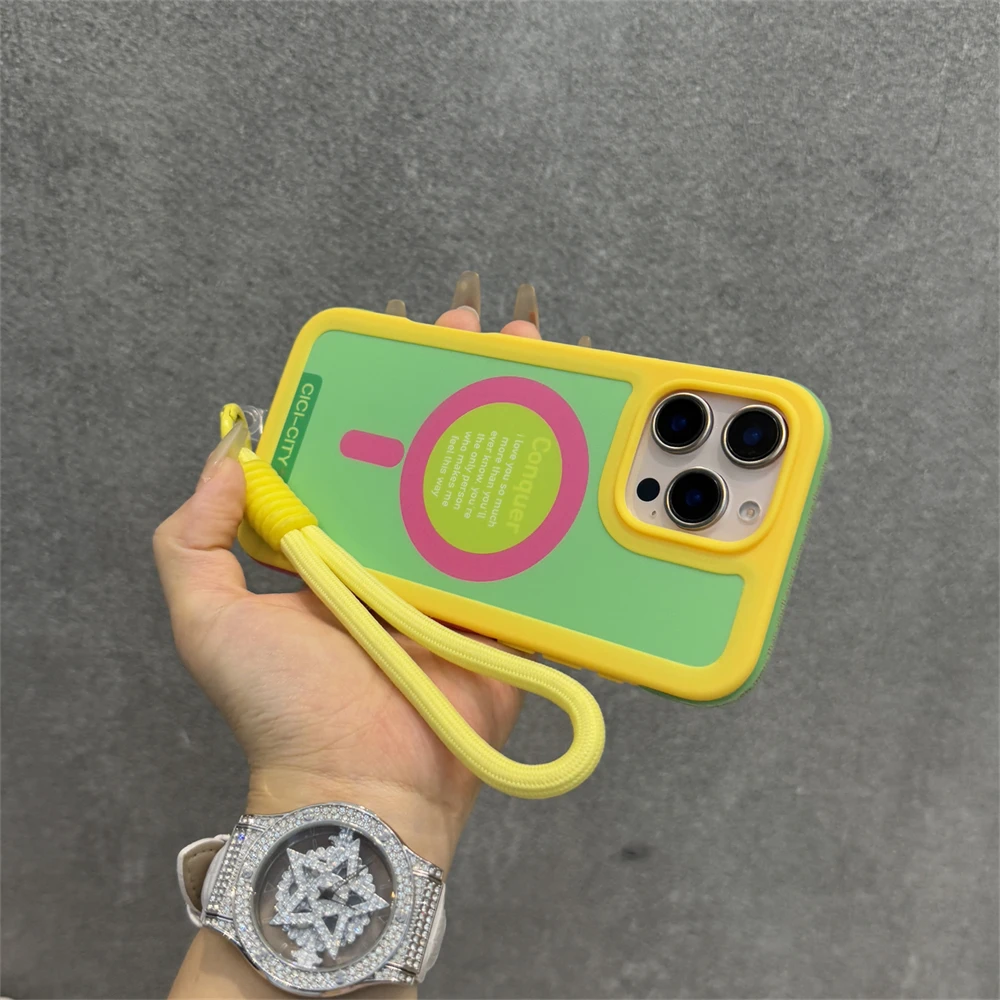 Luxury With Lanyard For Magsafe Matte Silicone Phone Case For iPhone 14 15 16 Pro Max Magnetic Wireless Charge Bumper Back Cover