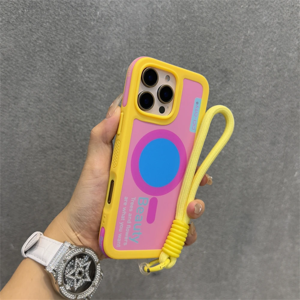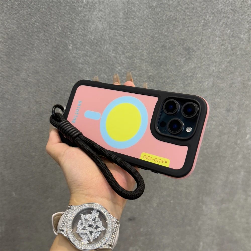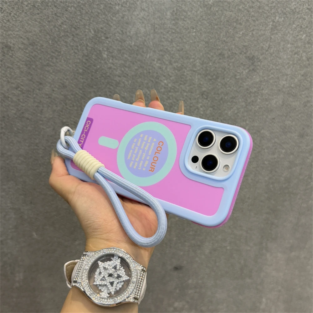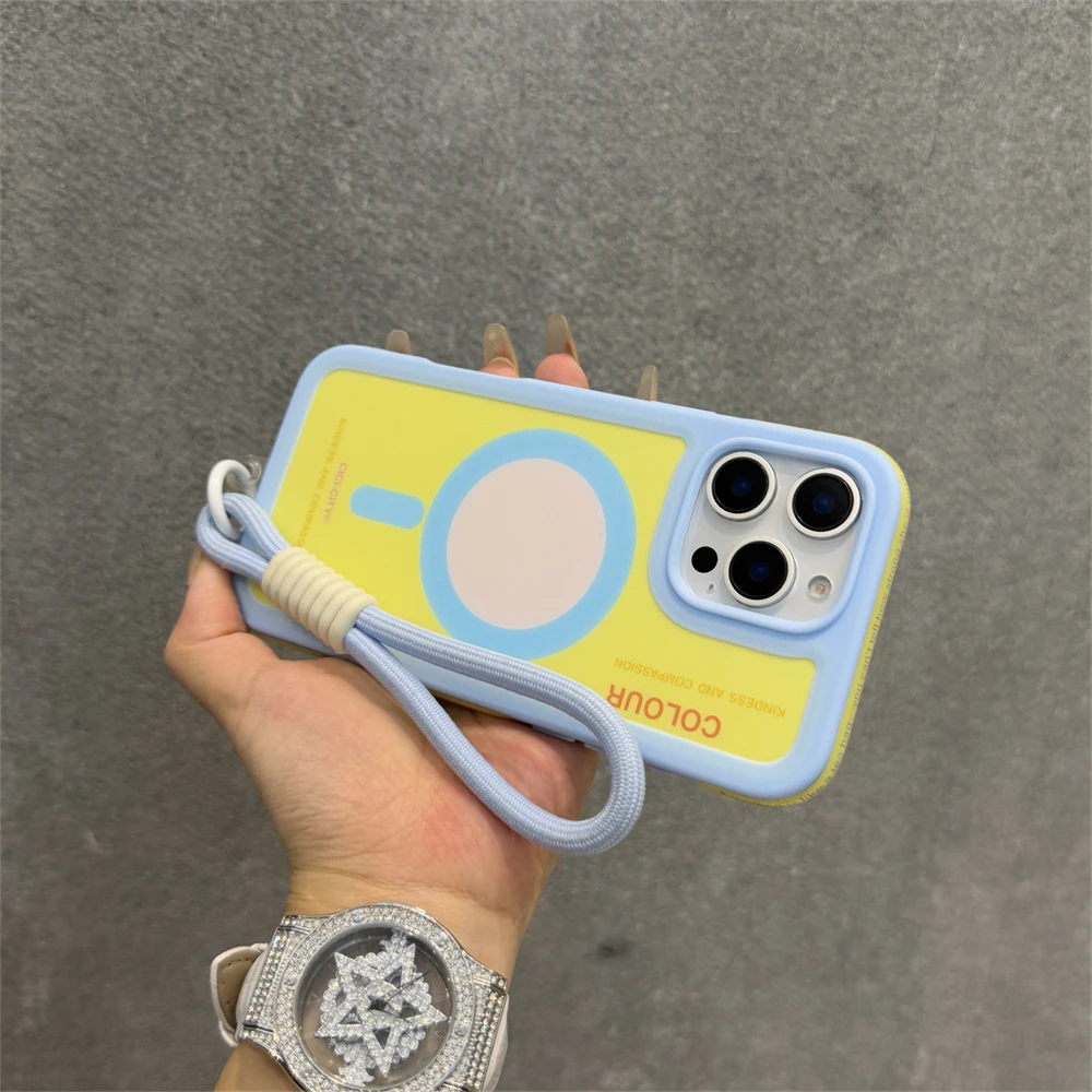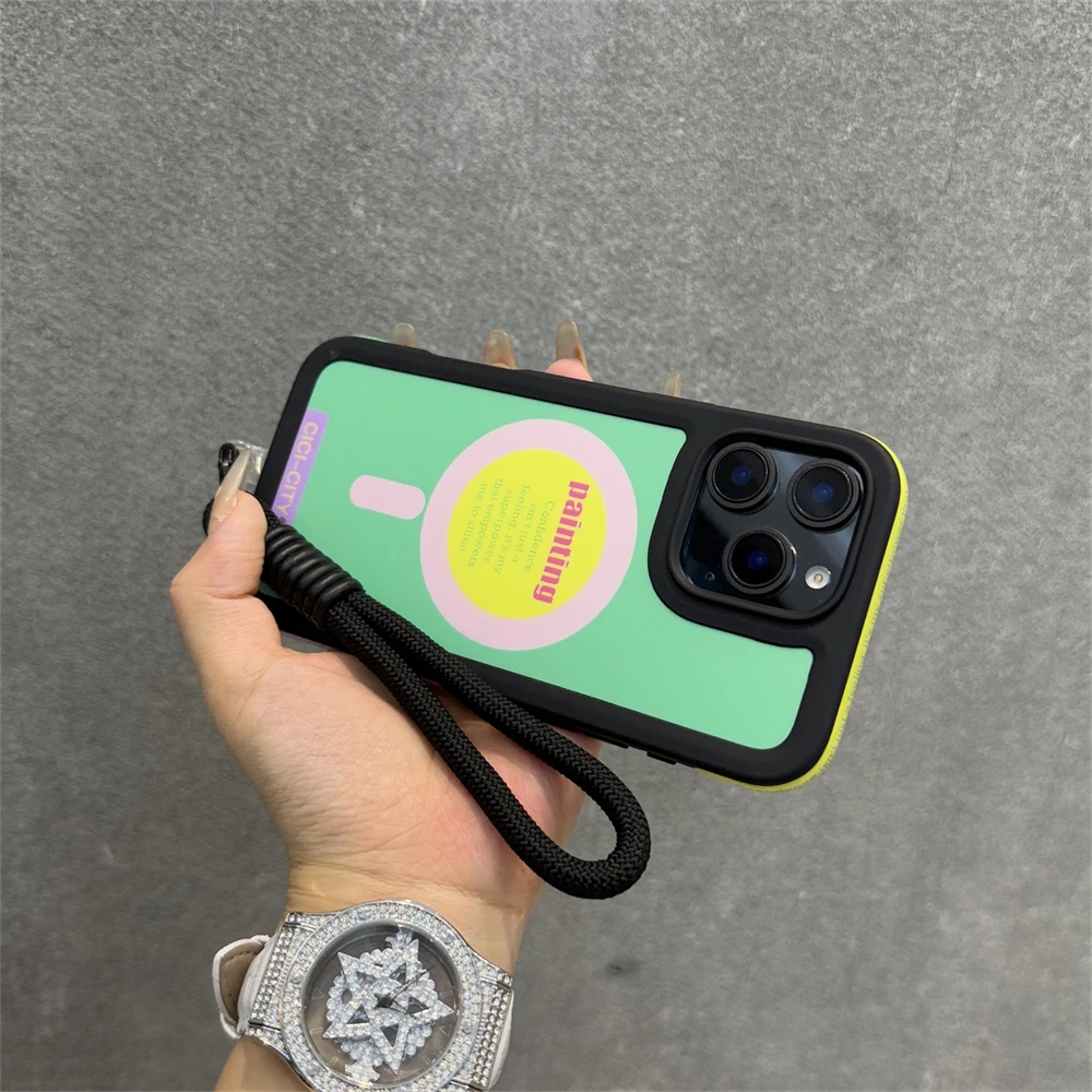 Luxury With Lanyard For Magsafe Matte Silicone Phone Case For iPhone 14 15 16 Pro Max Magnetic Wireless Charge Bumper Back Cover