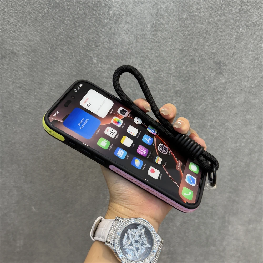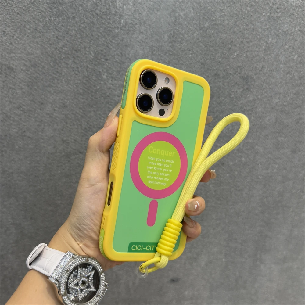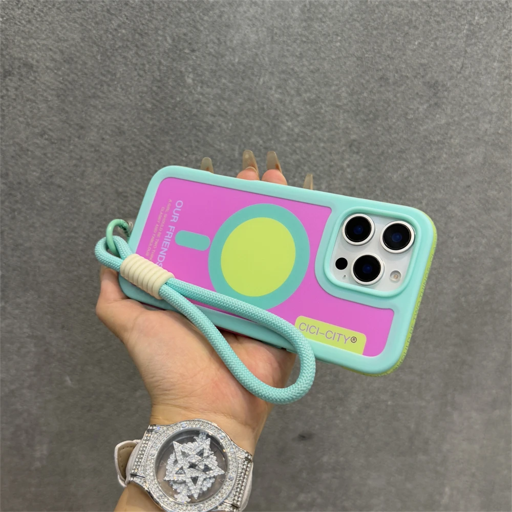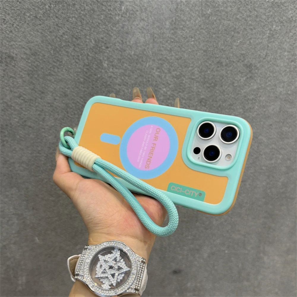 Luxury With Lanyard For Magsafe Matte Silicone Phone Case For iPhone 14 15 16 Pro Max Magnetic Wireless Charge Bumper Back Cover