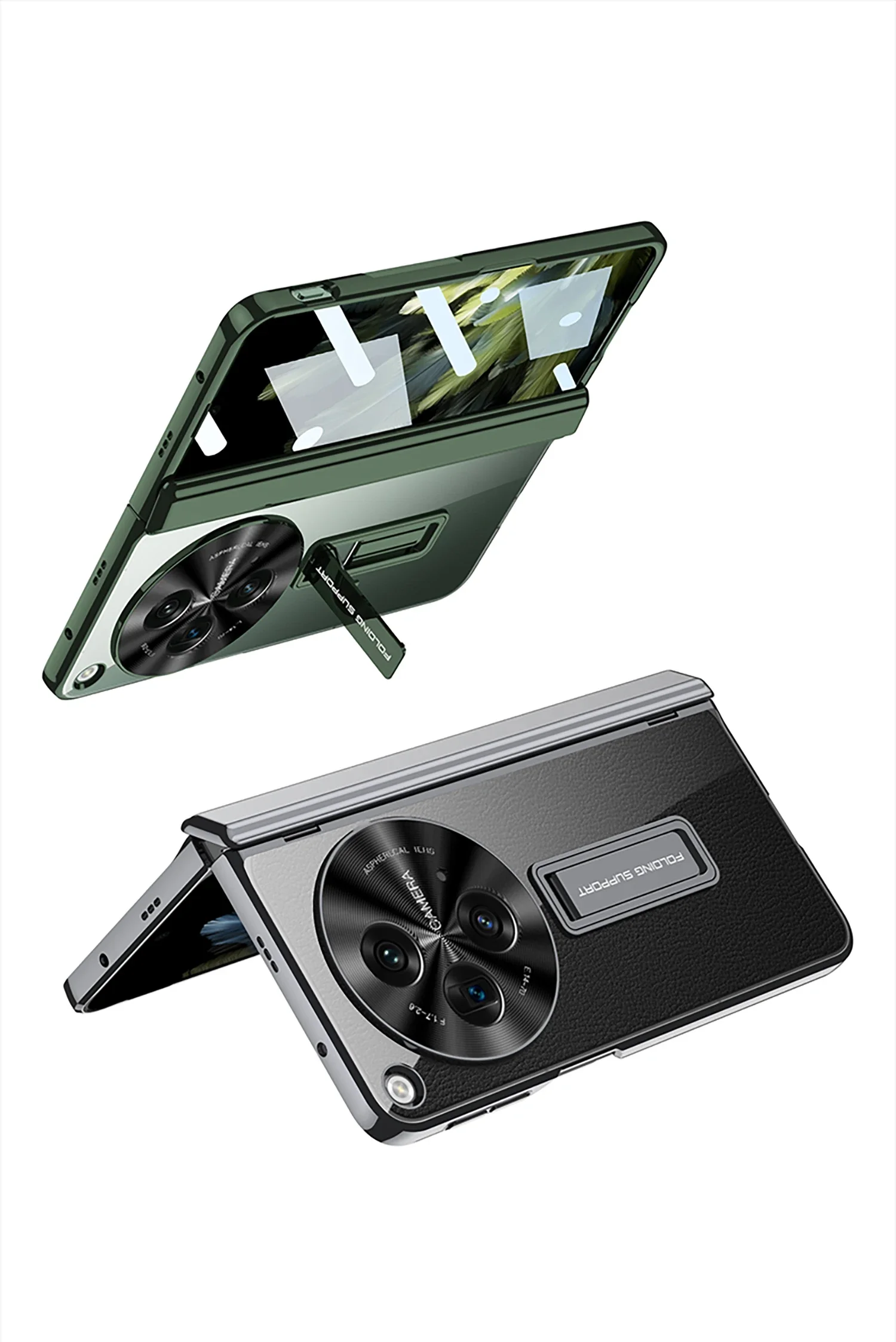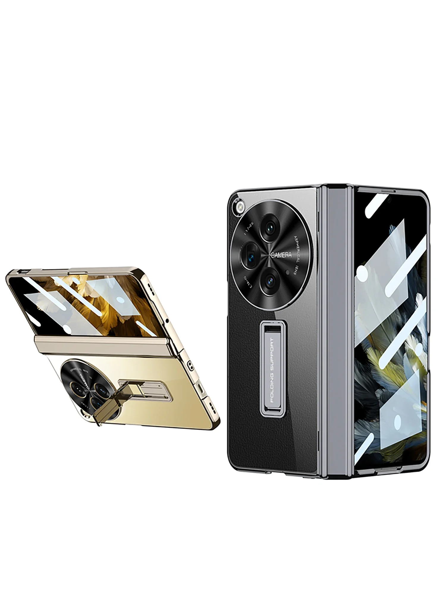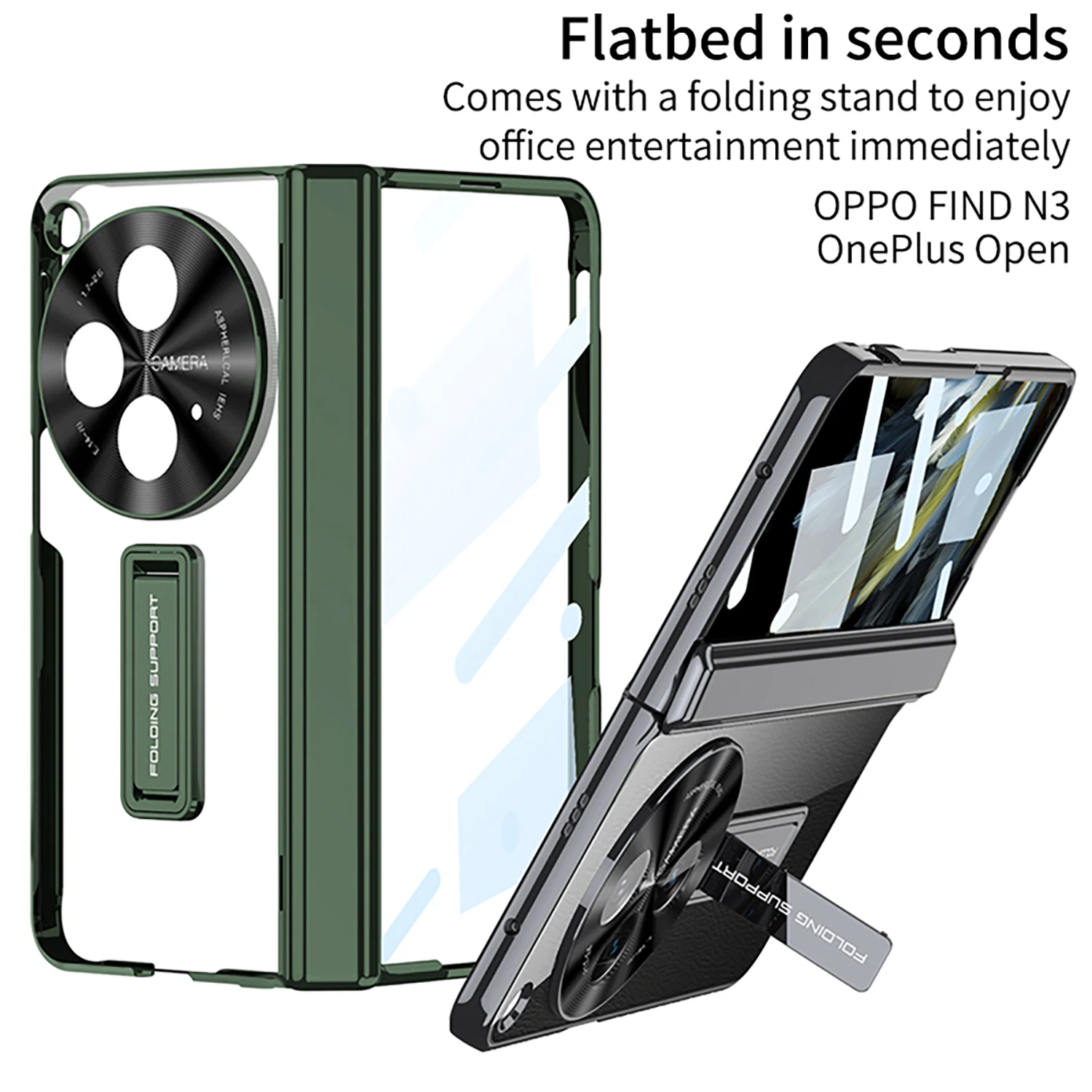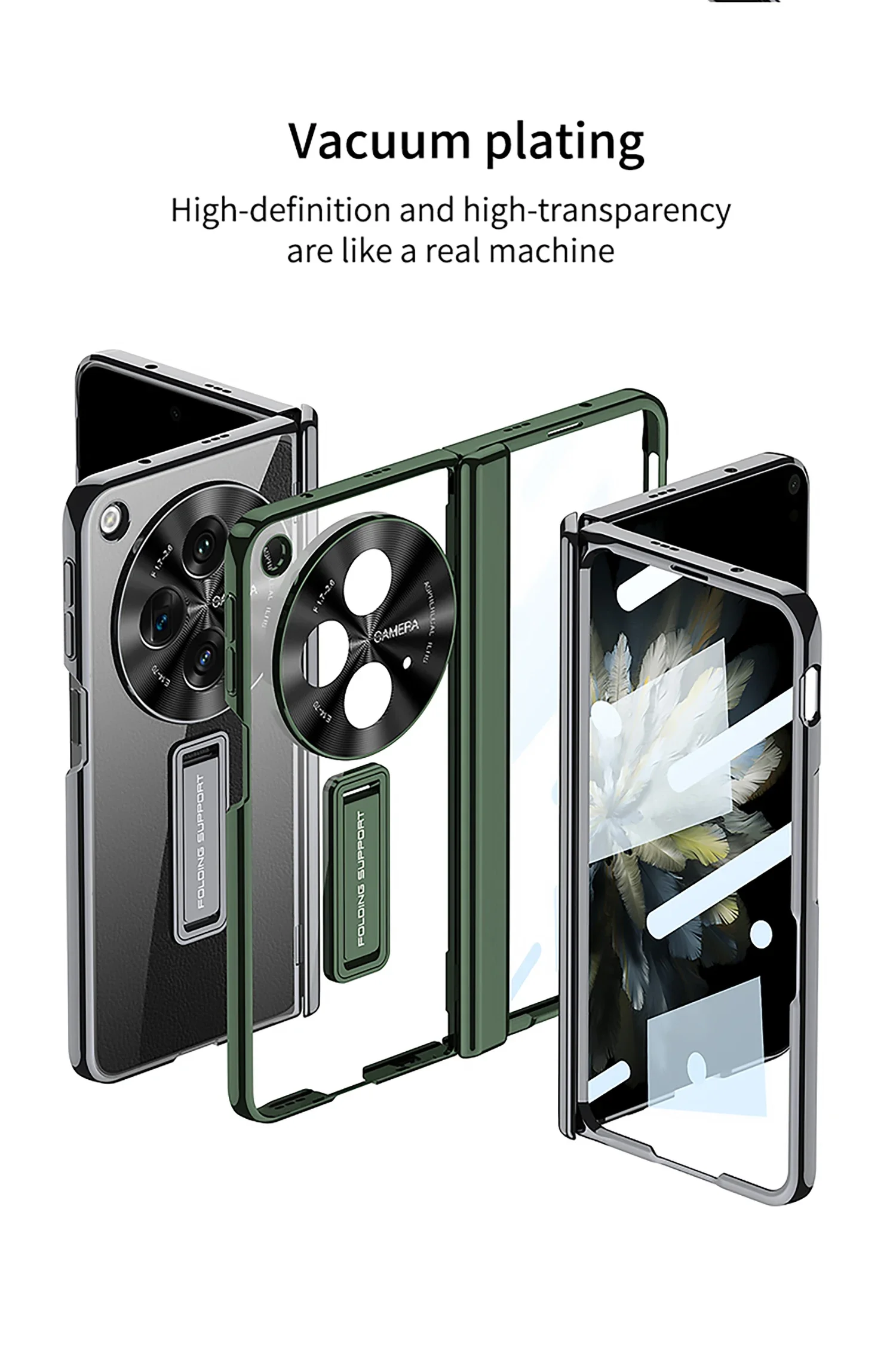 Magnetic Hinge Clear Stand Case For Oneplus Open Luxury Plating Transparent Screen Glass Protective Cover For OPPO Find N3 Case