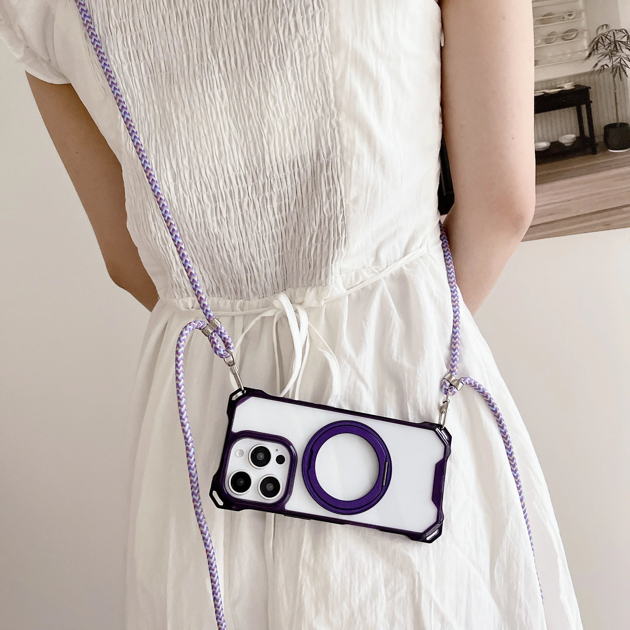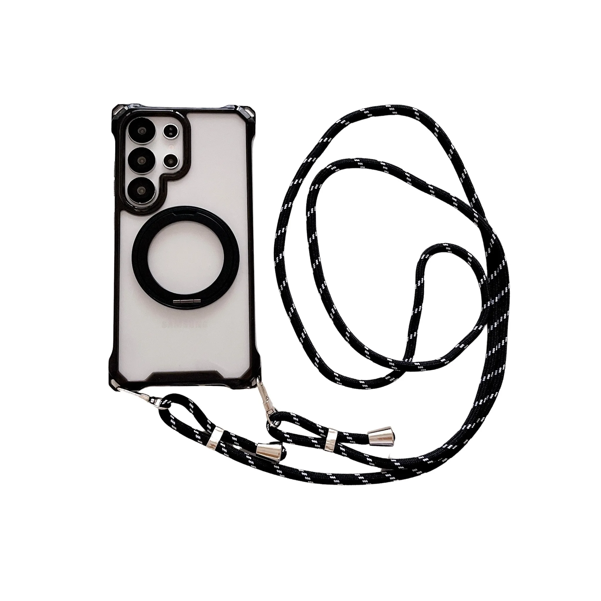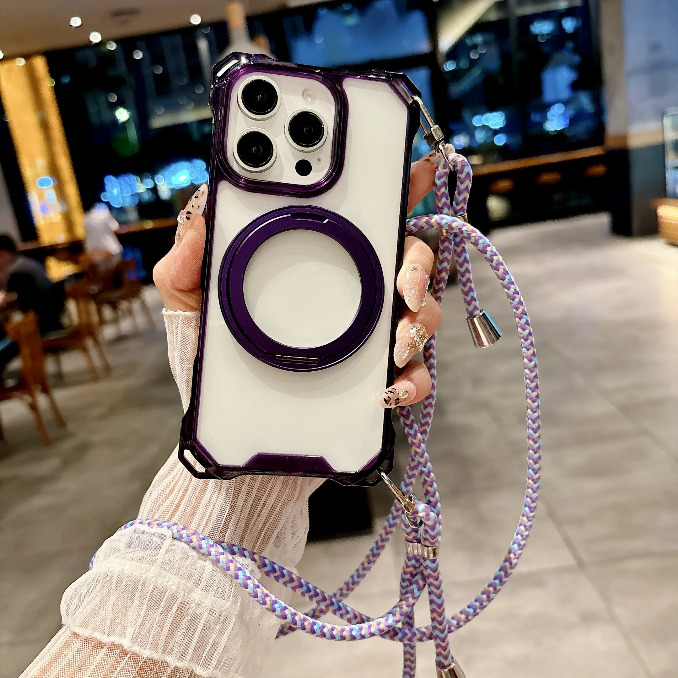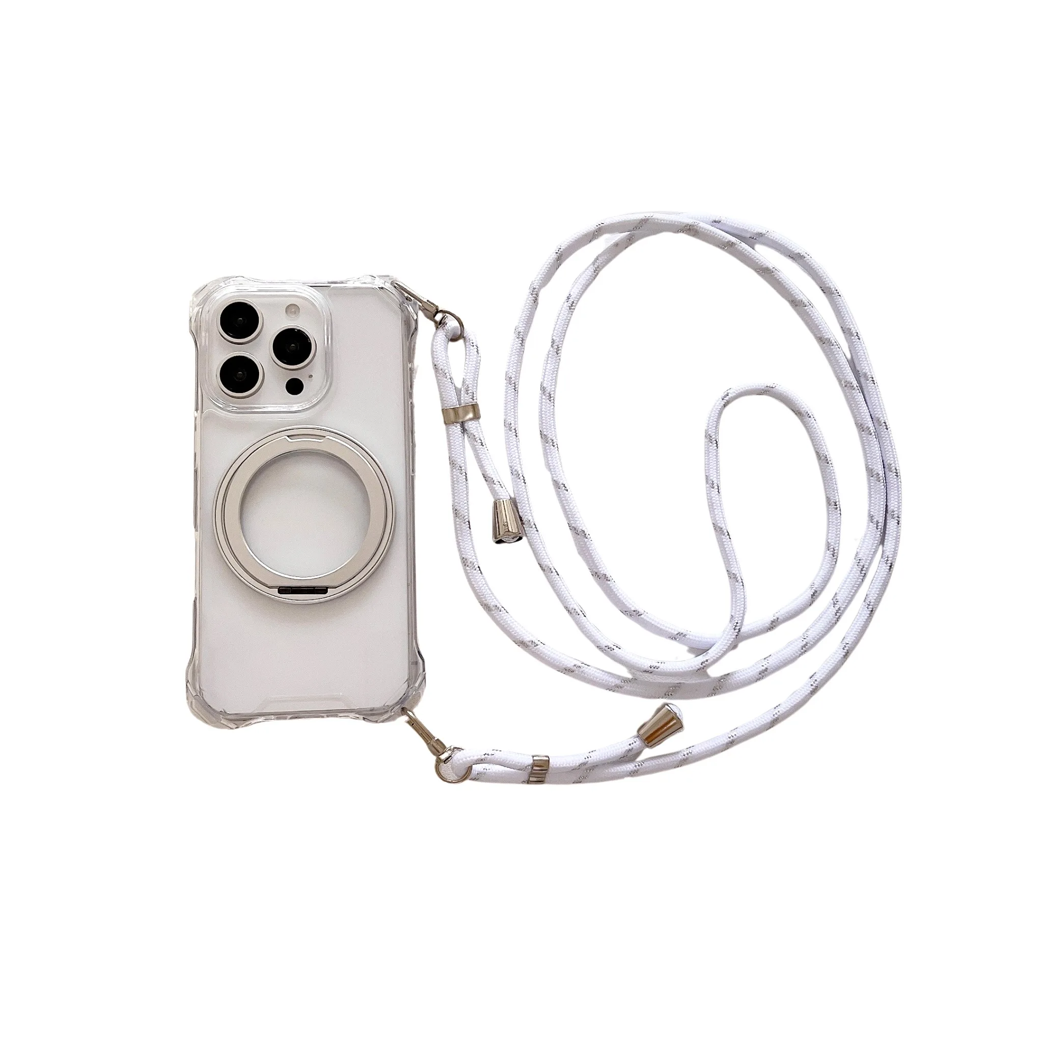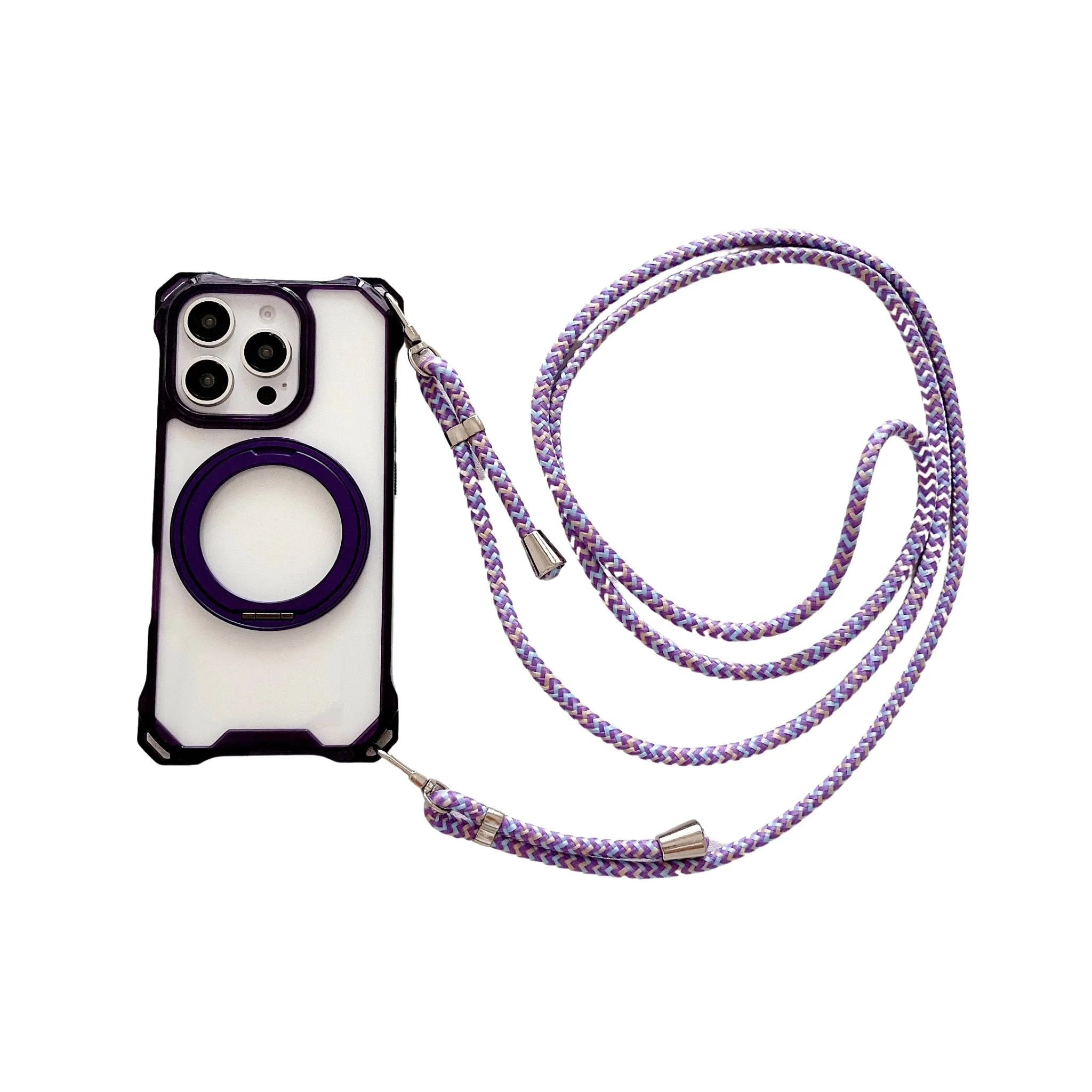 Magnetic Stand Four Corners Strap Case For iPhone 16 Pro Max 15 13 11 12 14 Plus 16E for Magsafe Ring Crossbody Lanyard Cover