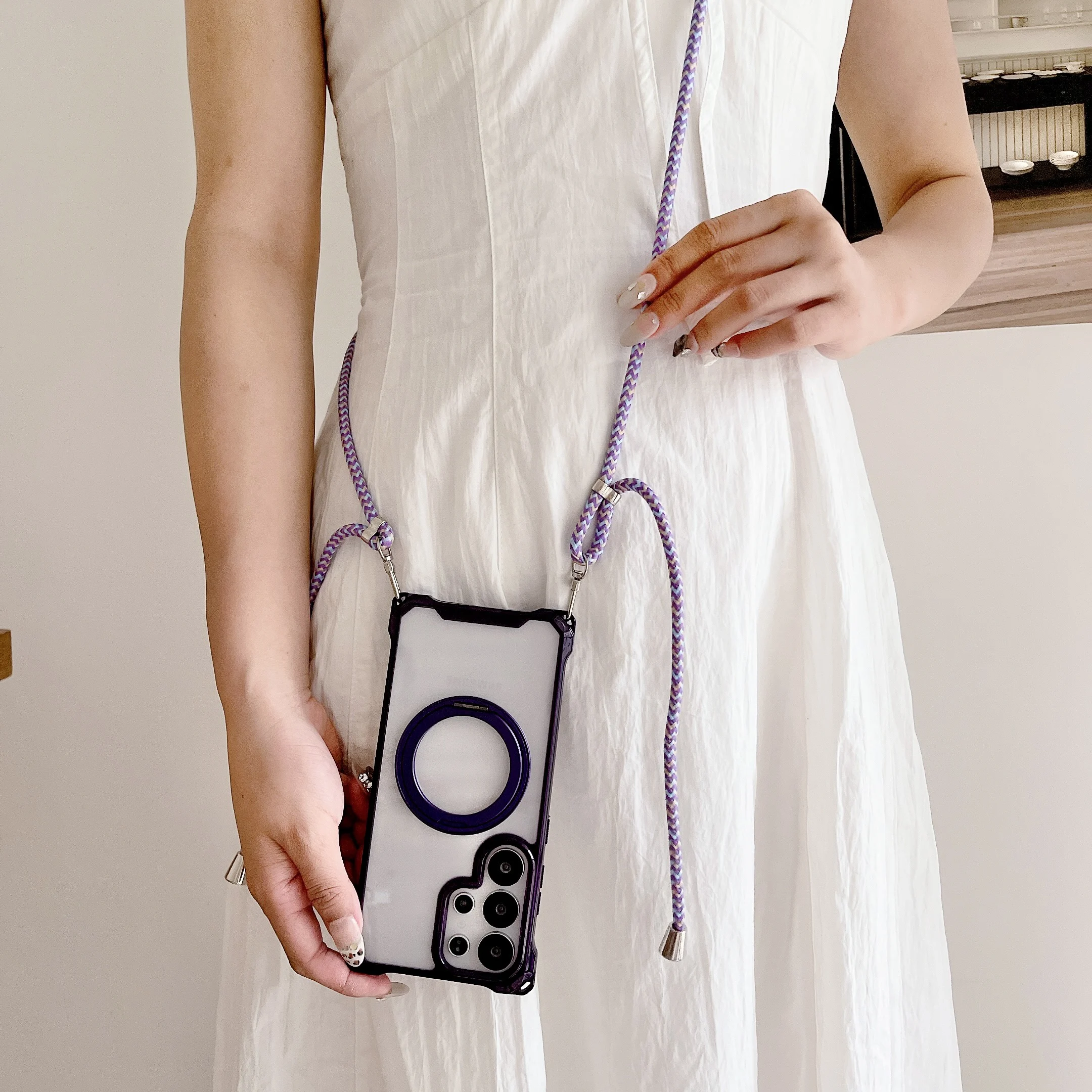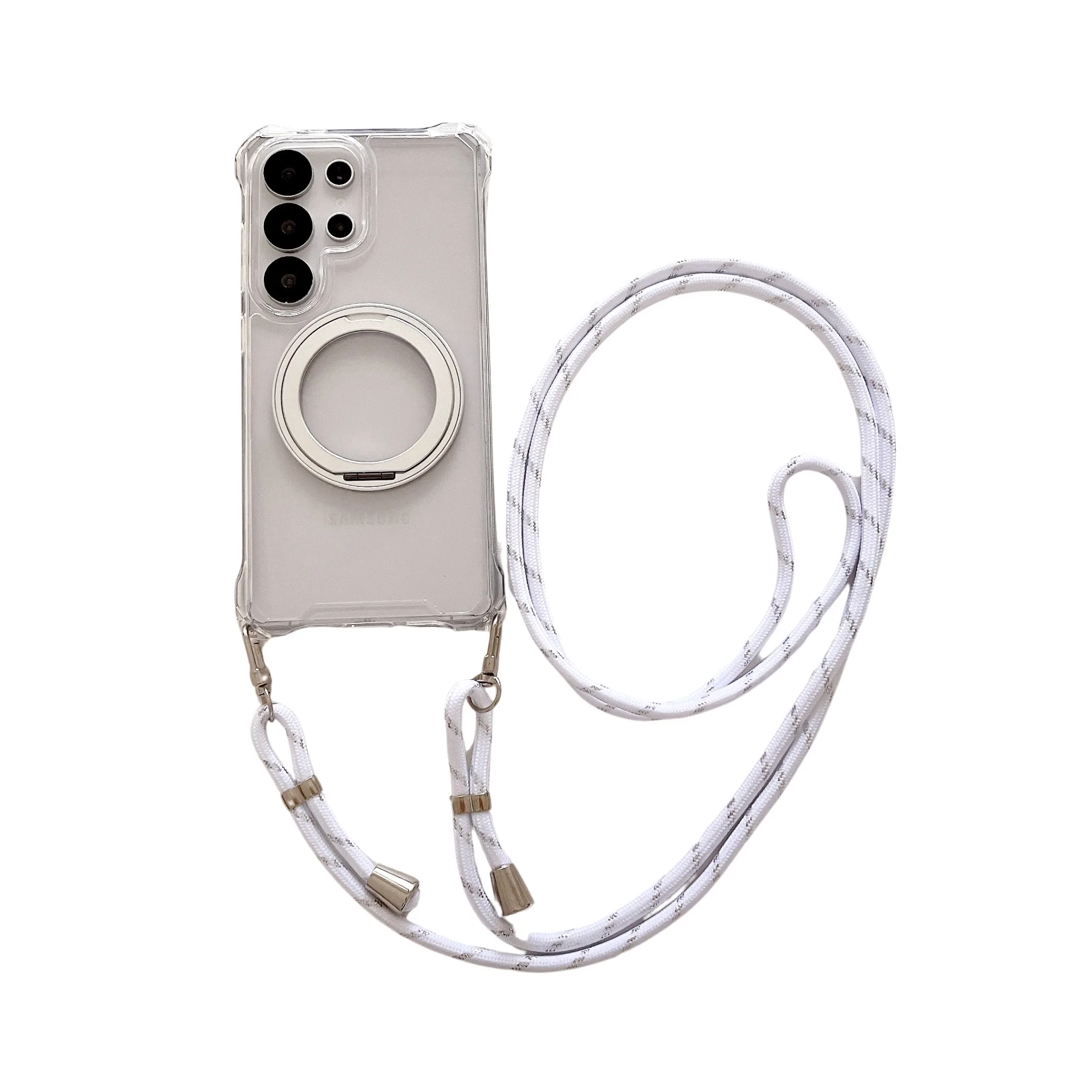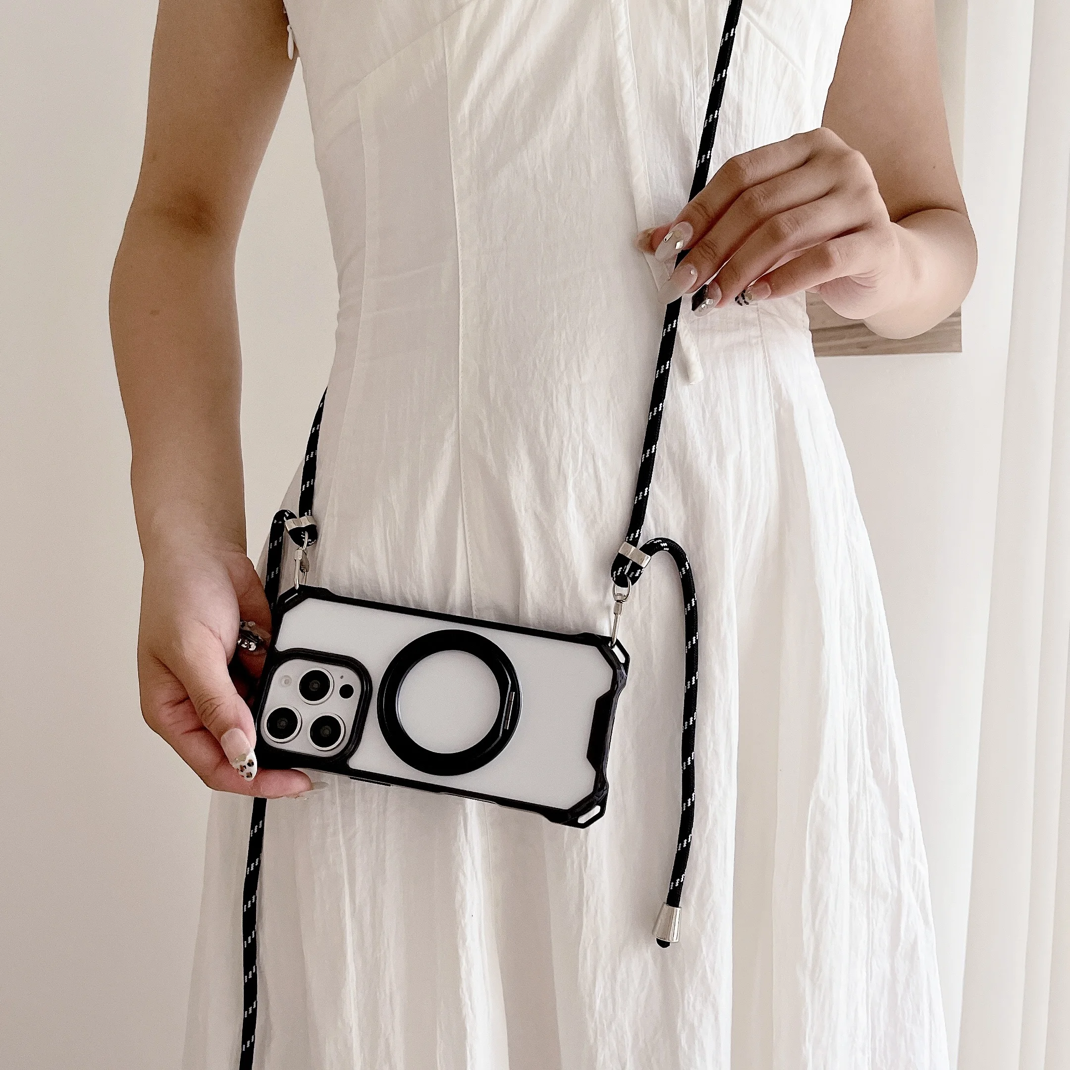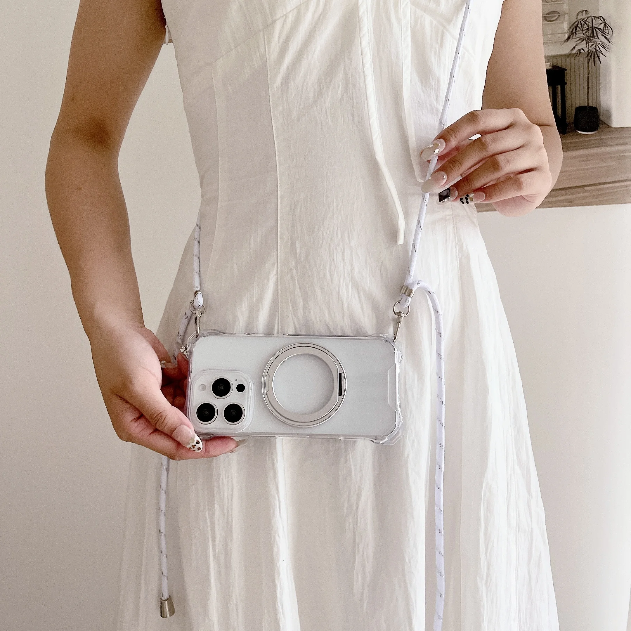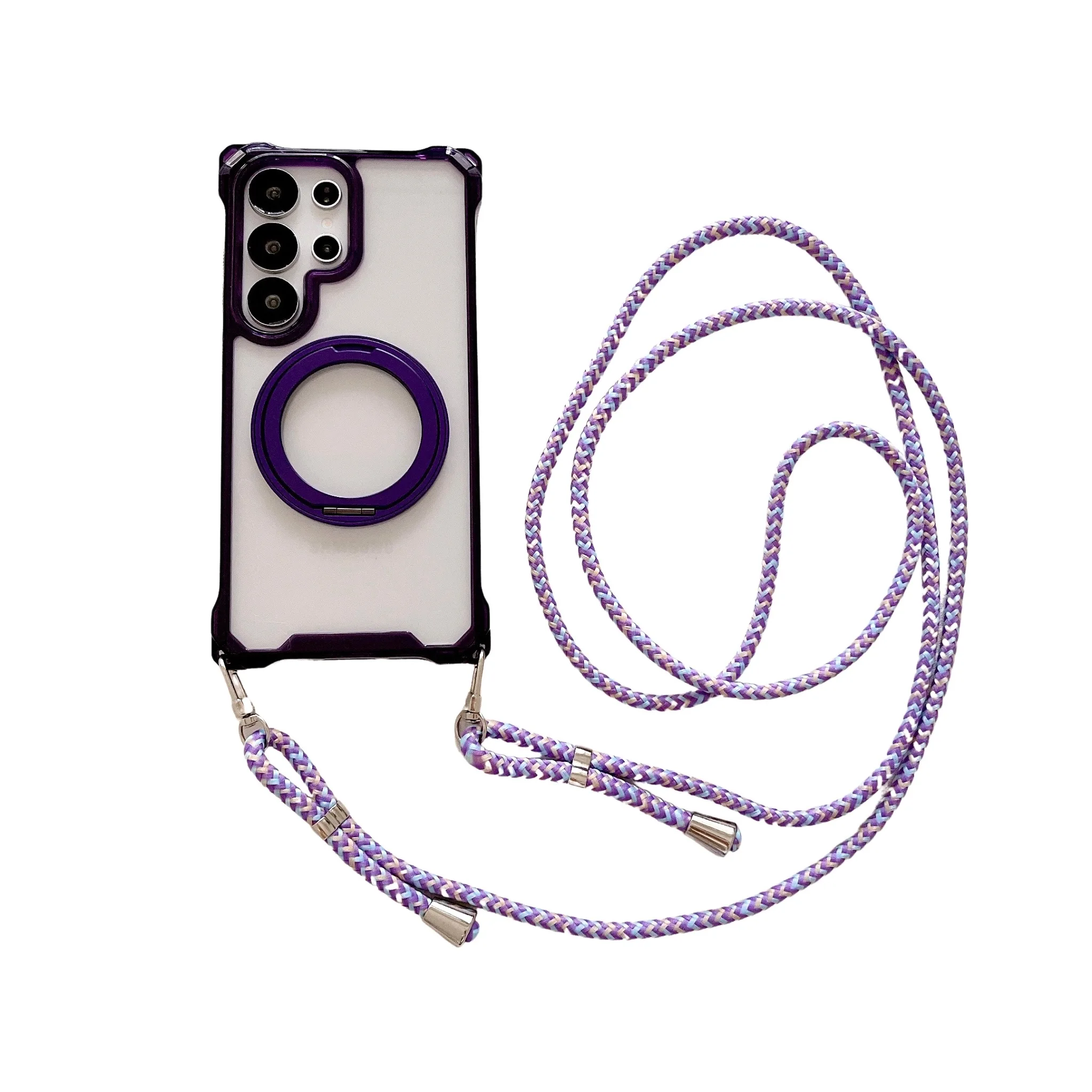 Magnetic Stand Four Corners Strap Case For iPhone 16 Pro Max 15 13 11 12 14 Plus 16E for Magsafe Ring Crossbody Lanyard Cover