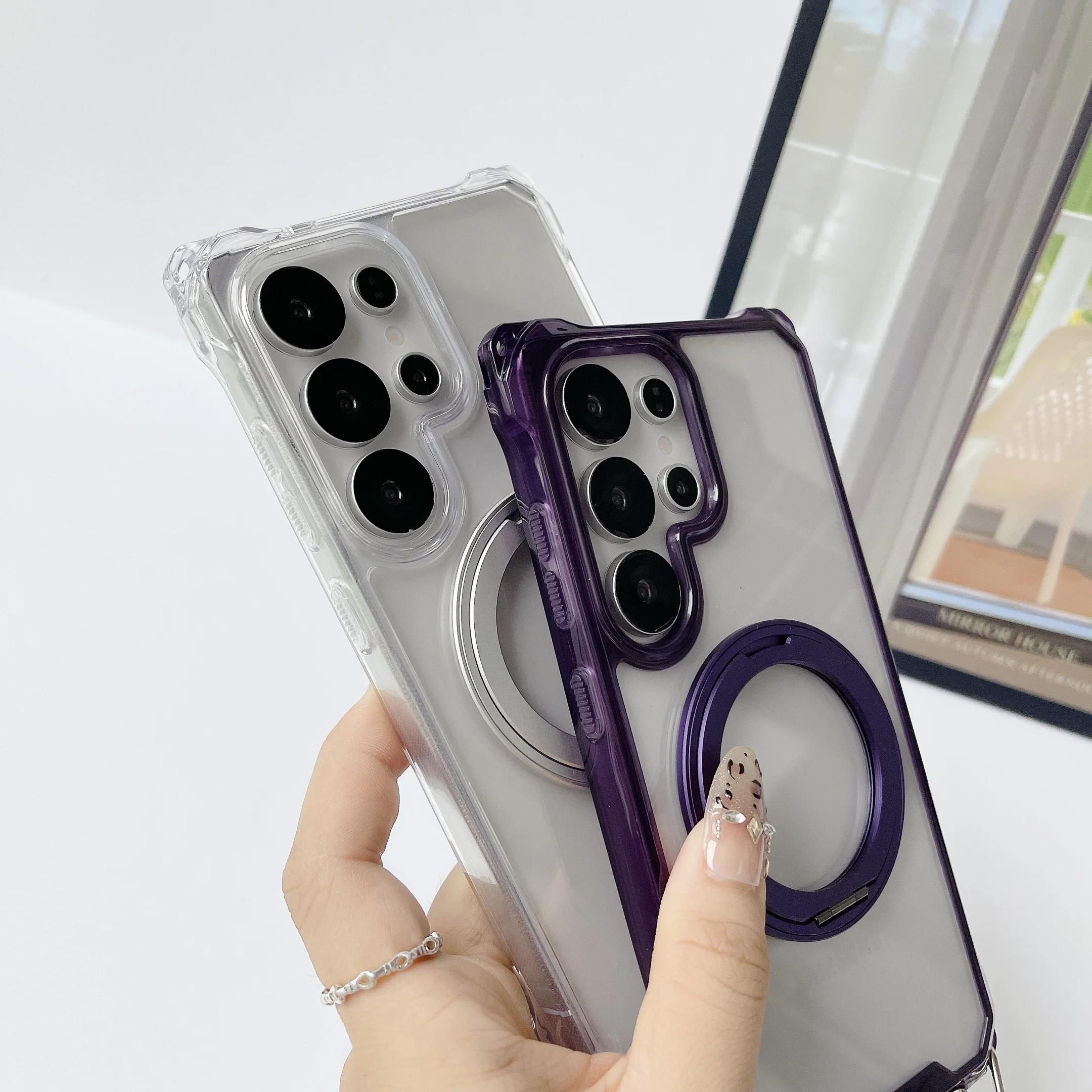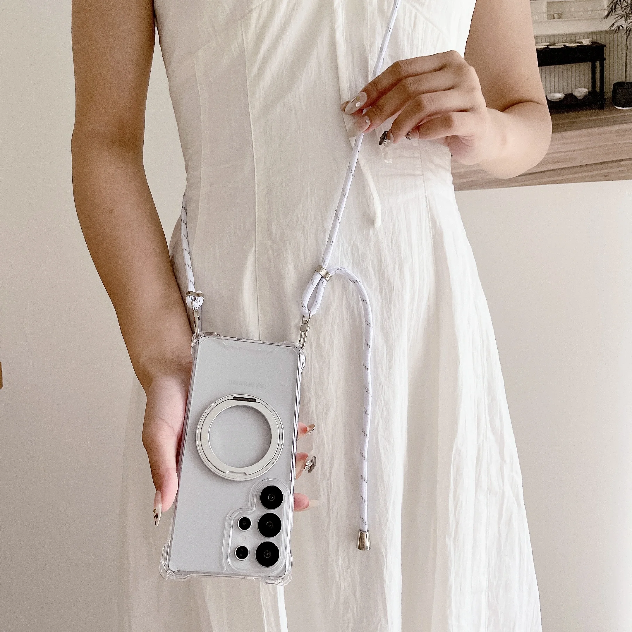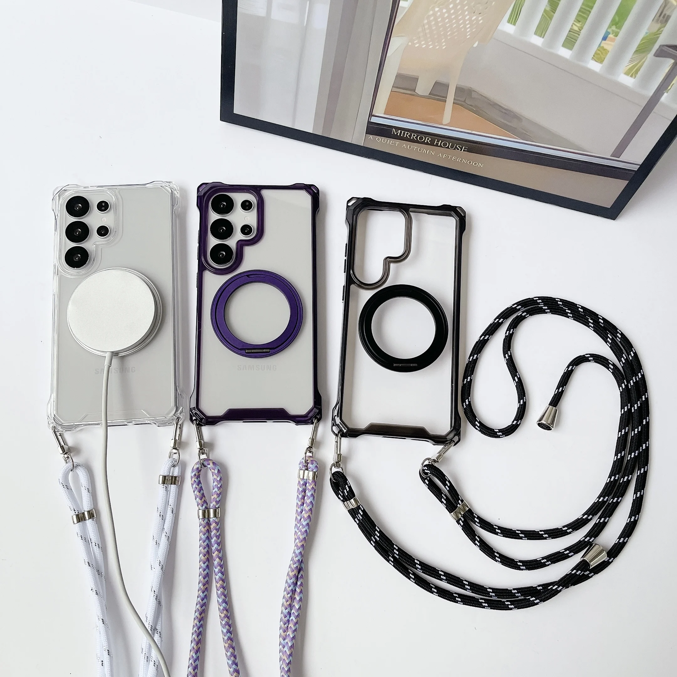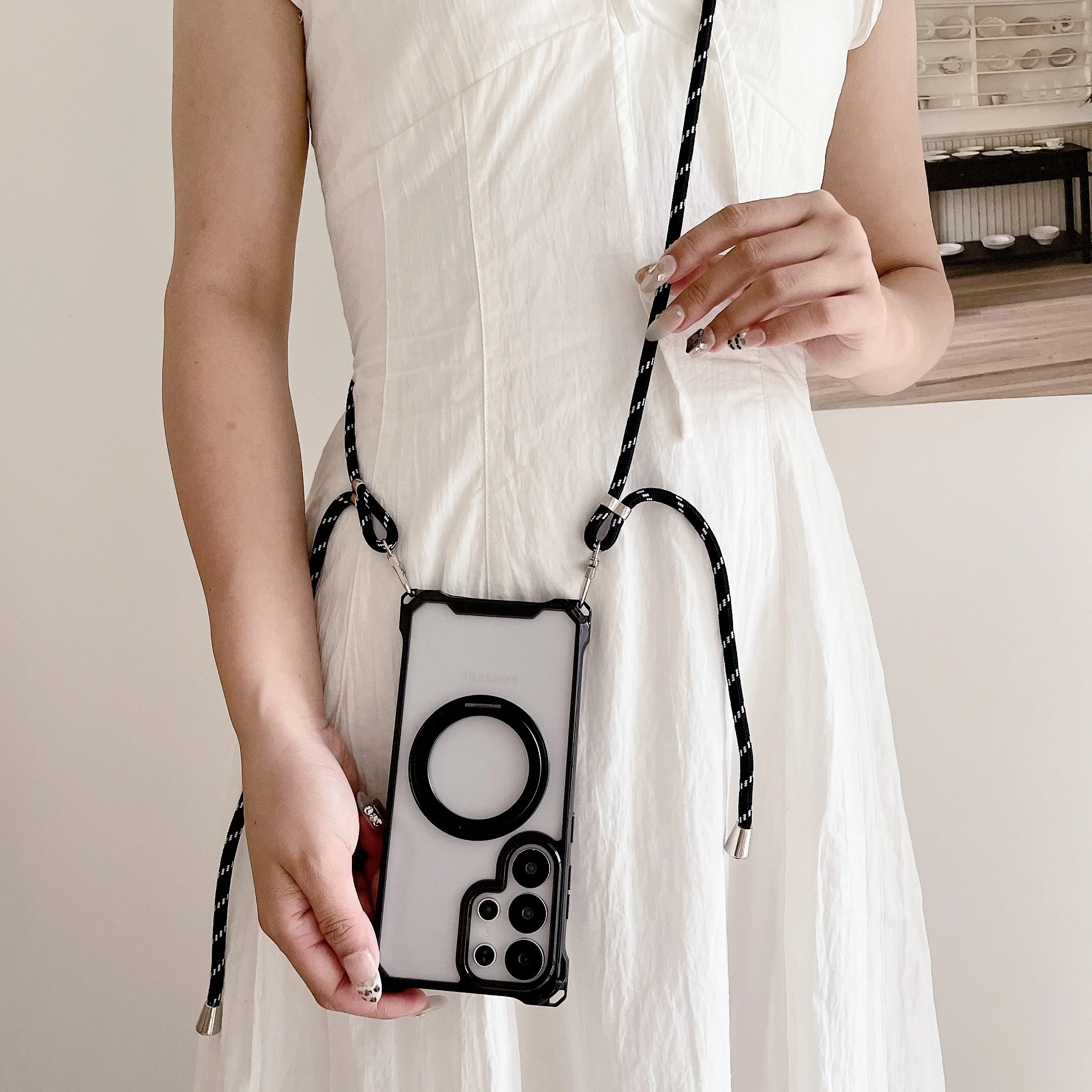 Magnetic Stand Four Corners Strap Case For iPhone 16 Pro Max 15 13 11 12 14 Plus 16E for Magsafe Ring Crossbody Lanyard Cover