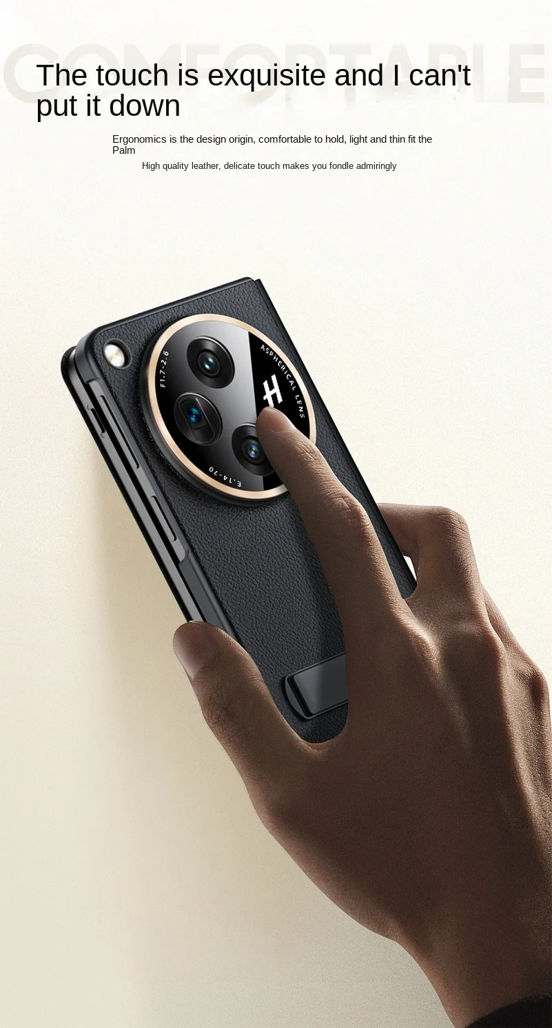 Metal Aperture Camera Protective Phone Case For OnePlus Open One Plus Open Luxury Leather All-inclusive Kickstand Holder Cover