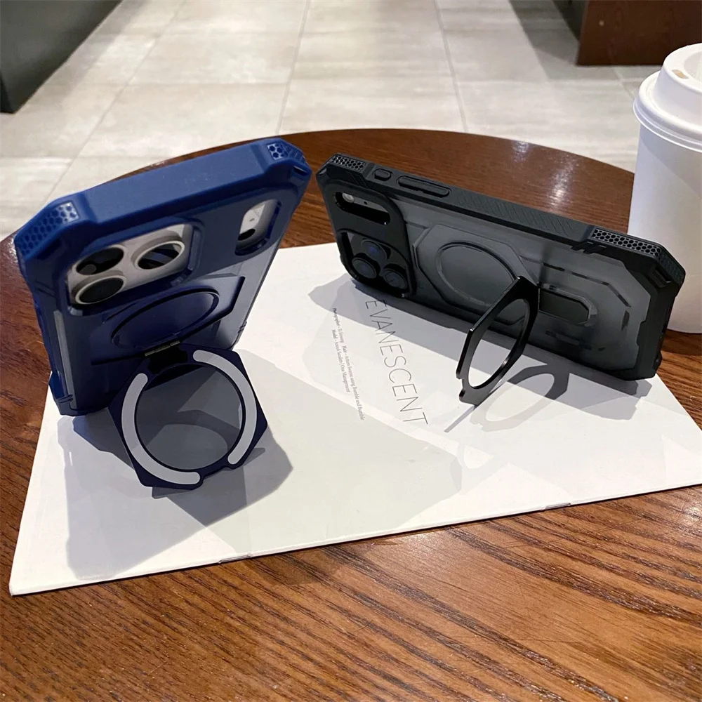 Military Armor Magnet Folding Stand Magnetic Phone Case For iPhone 16 17 Pro Max Air Four Corners Anti-Drop Protection Covers