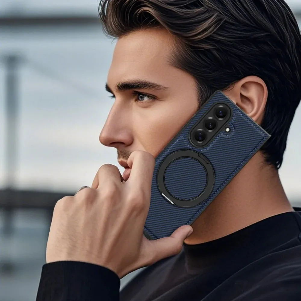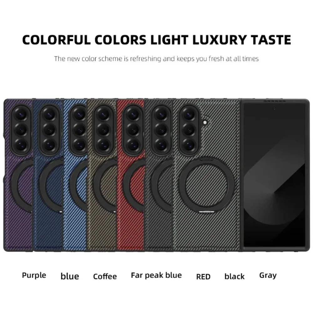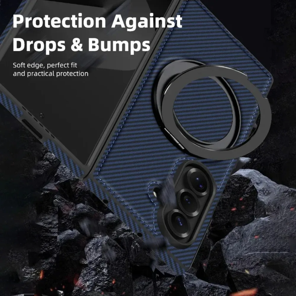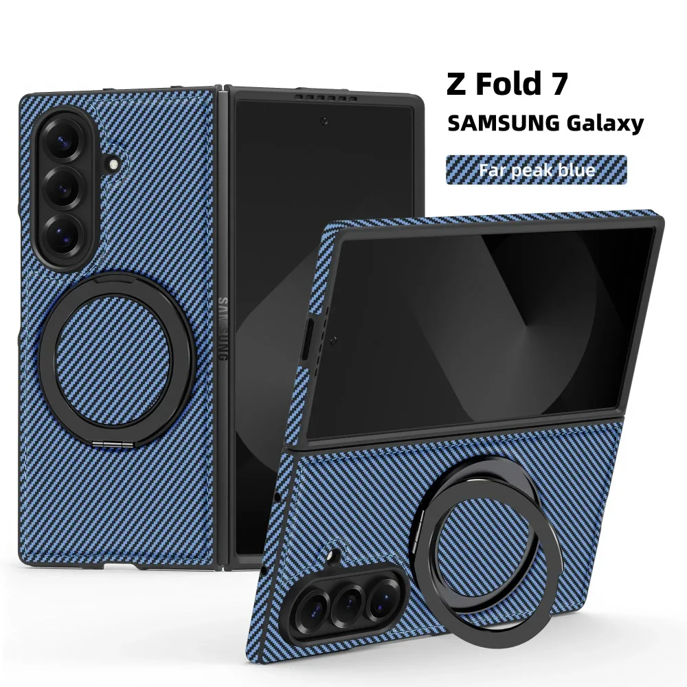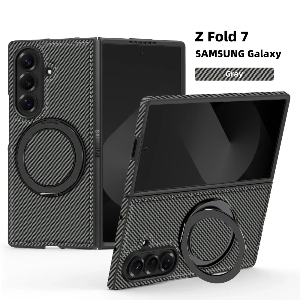 Minimalist Kevlar Carbon Fiber Magnetic Holder Case for Samsung Galaxy Z Fold 7 6 5 4 3 For Mag-safe 360 Rotating Bracket Cover