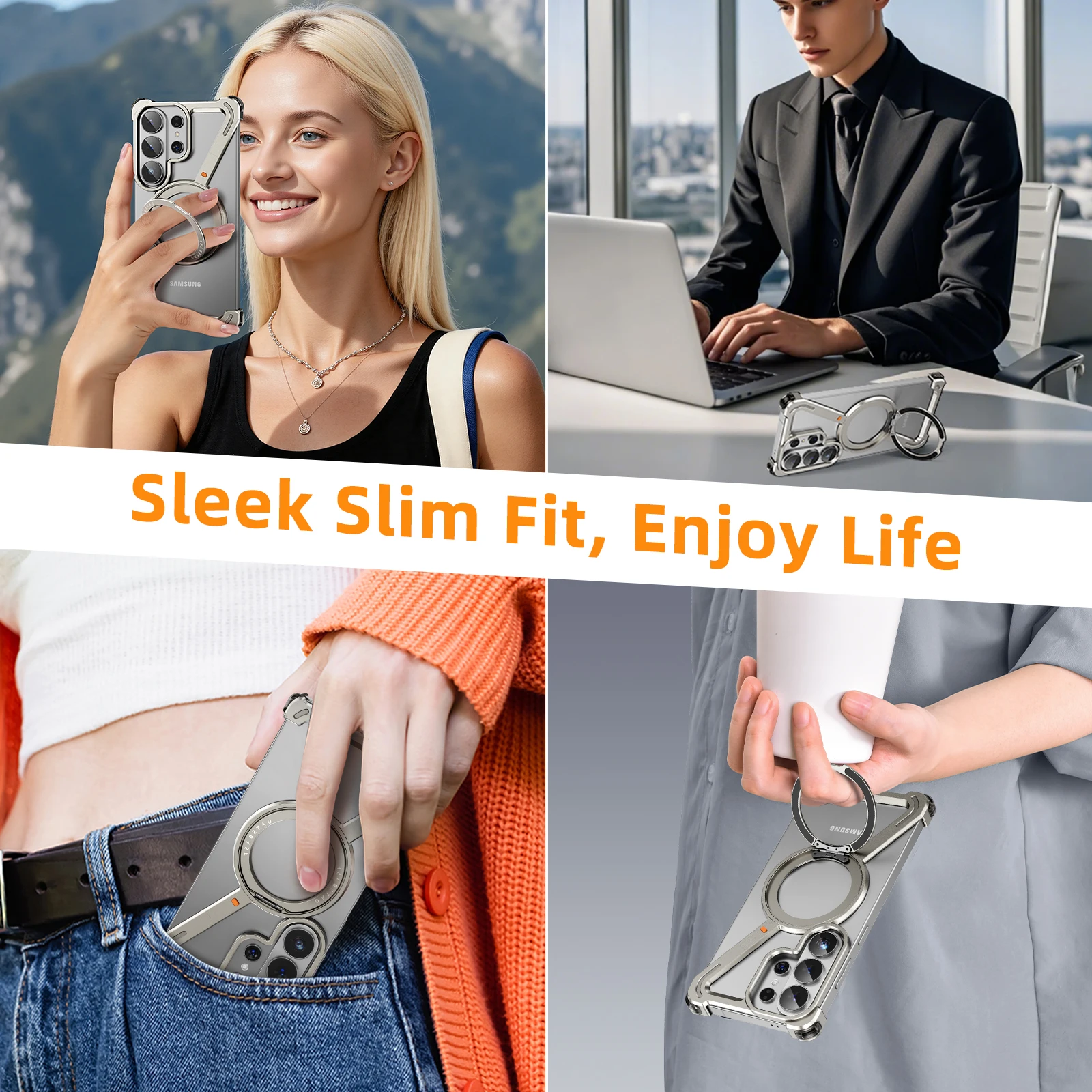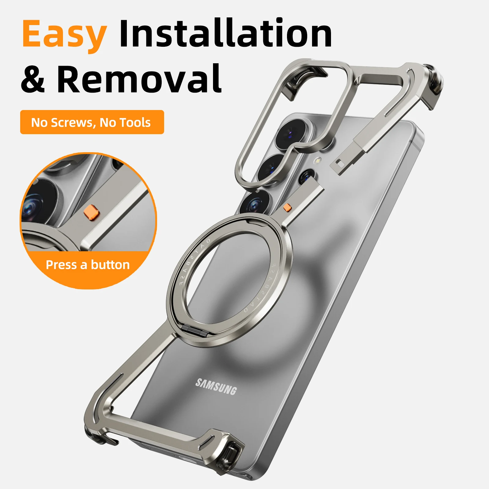 Oatsbasf for Samsung Galaxy S26 Ultra Frameless Metal Bumper Z Case Phone Case with 360°Rotating Stand Magnetic Shockproof Cover