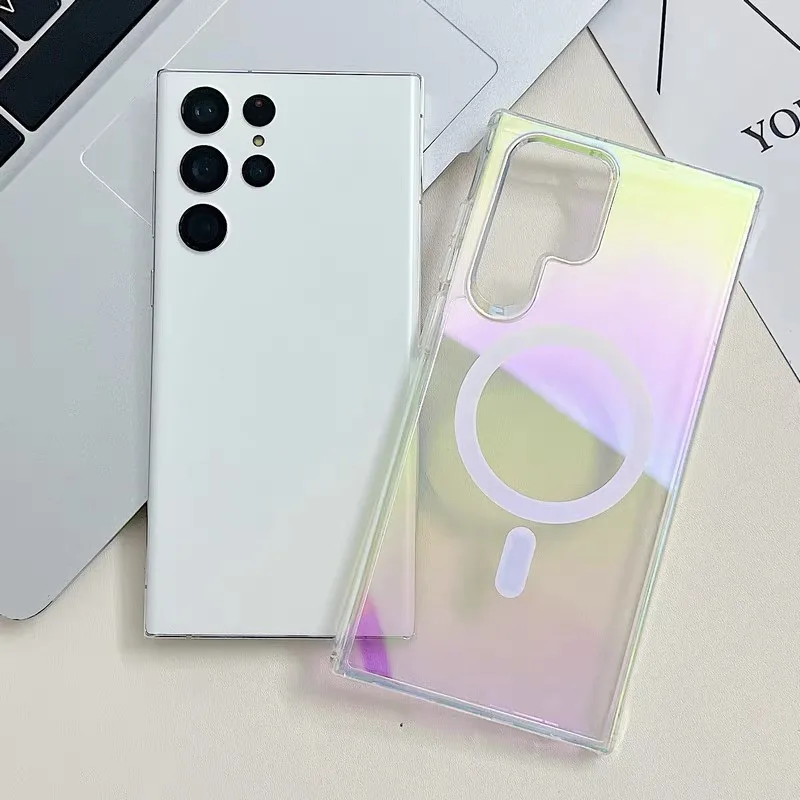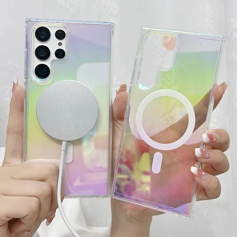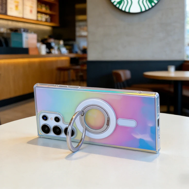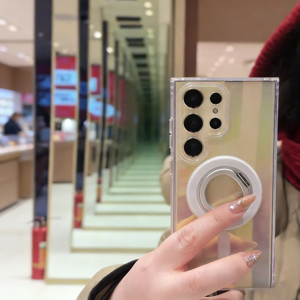 Rainbow Gradient Holder Magnetic Case For Samsung S26 S25 Edge S24 S23 FE S22 S21 Ultra Plus A56 A35 A17 Transparent Slim Cover