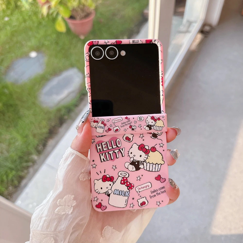 Sanrio Hello Kitty Milk Bear Cute Cartoon Phone Case For Samsung Galaxy Z Flip 7 6 5 Hard TPU Cover For Z Flip 4 With Lanyard