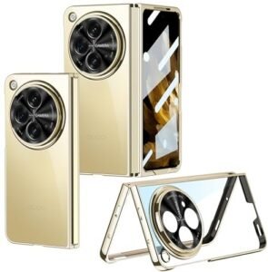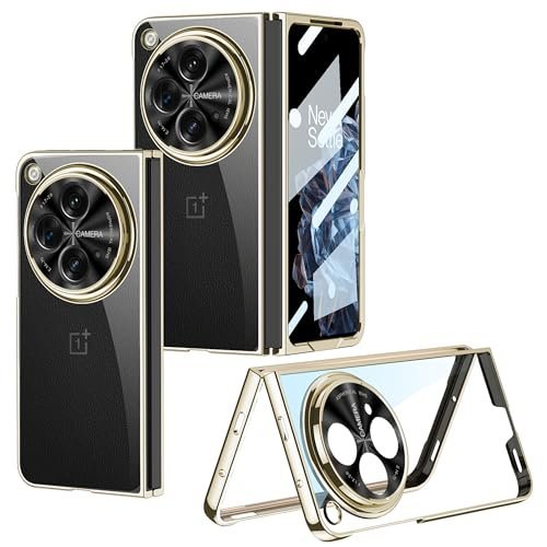 Transparent Electroplated Case/Cover with Back Screen Protector for Oneplus Open 5g /Oneplus Open 5g Case Cover – (Clear Gold | Polycarbonate)