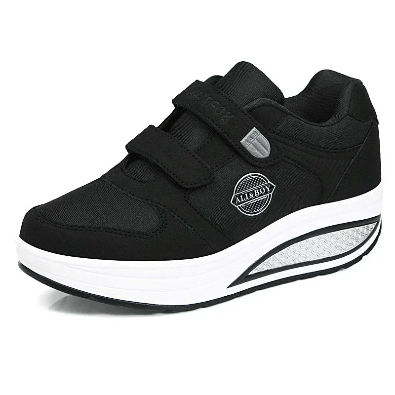 Women’s Swing Sneakers Wedge Platform Toning Sports Shoes for Woman Breathable Slimming Fitness Rocking Mom Shoes Thick Sole